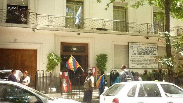 El punto de encuentro para iniciar la actividad el miércoles 30 de noviembre, fue la Avenida Cabildo y Lacroze, a las doce del mediodía, donde muchos vecinos y vecinas al ver las whipalas -emblemas indígenas- se detuvieron para preguntar acerca del reclamo. A las 13.30 hs, unas treinta personas de distintas organizaciones originarias y no indígenas llegaron hasta la puerta del INAPL, ubicado en la calle 3 de Febrero 1378 del barrio de Belgrano. Diana Rolandi recibió a una delegación de cinco personas del Movimiento en Defensa de la Pacha, y el diálogo se extendió durante casi una hora.