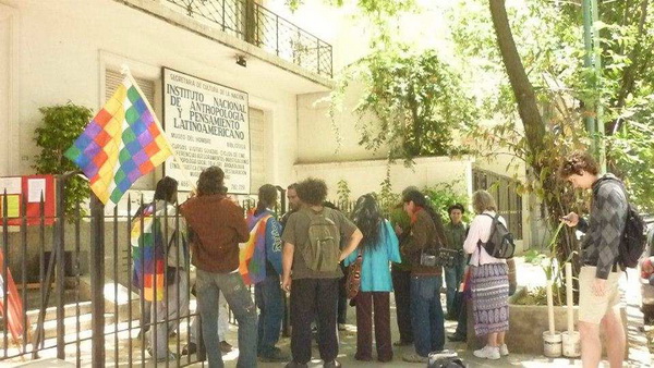 El punto de encuentro para iniciar la actividad el miércoles 30 de noviembre, fue la Avenida Cabildo y Lacroze, a las doce del mediodía, donde muchos vecinos y vecinas al ver las whipalas -emblemas indígenas- se detuvieron para preguntar acerca del reclamo. A las 13.30 hs, unas treinta personas de distintas organizaciones originarias y no indígenas llegaron hasta la puerta del INAPL, ubicado en la calle 3 de Febrero 1378 del barrio de Belgrano. Diana Rolandi recibió a una delegación de cinco personas del Movimiento en Defensa de la Pacha, y el diálogo se extendió durante casi una hora.