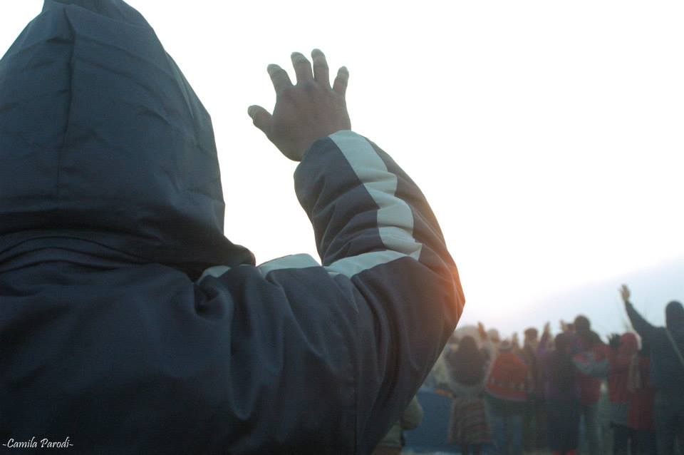 Fotos de Camila Parodi. Del jueves 20 al viernes 21 se celebró en Punta Querandí la ceremonia del Inti Raymi para recibir el nuevo ciclo en el hemisferio sur. Unas 200 personas hicieron una vigilia hasta el amanecer, compartiendo la noche entre fogones, música sikuri y una caminata por la vía muerta.