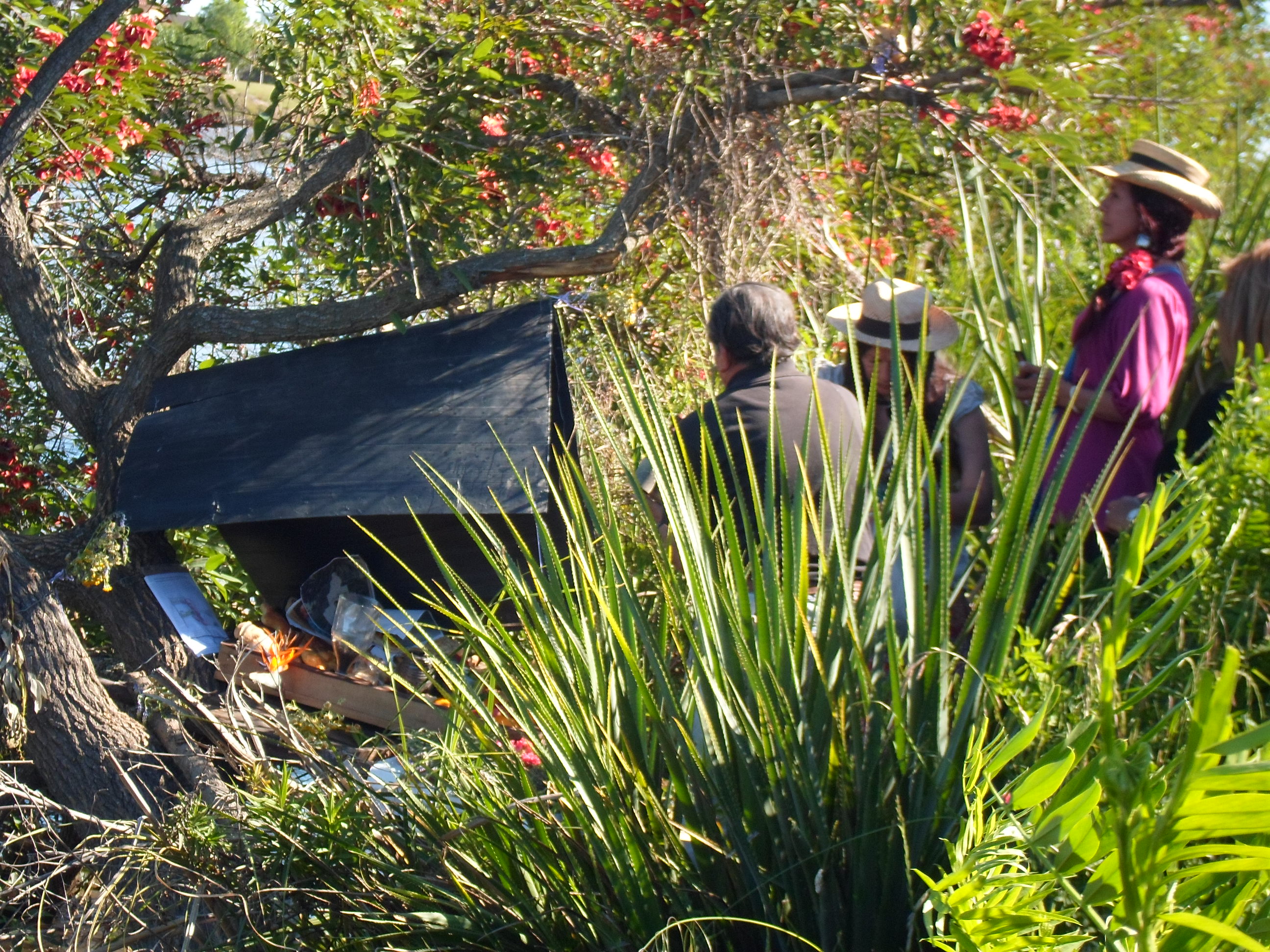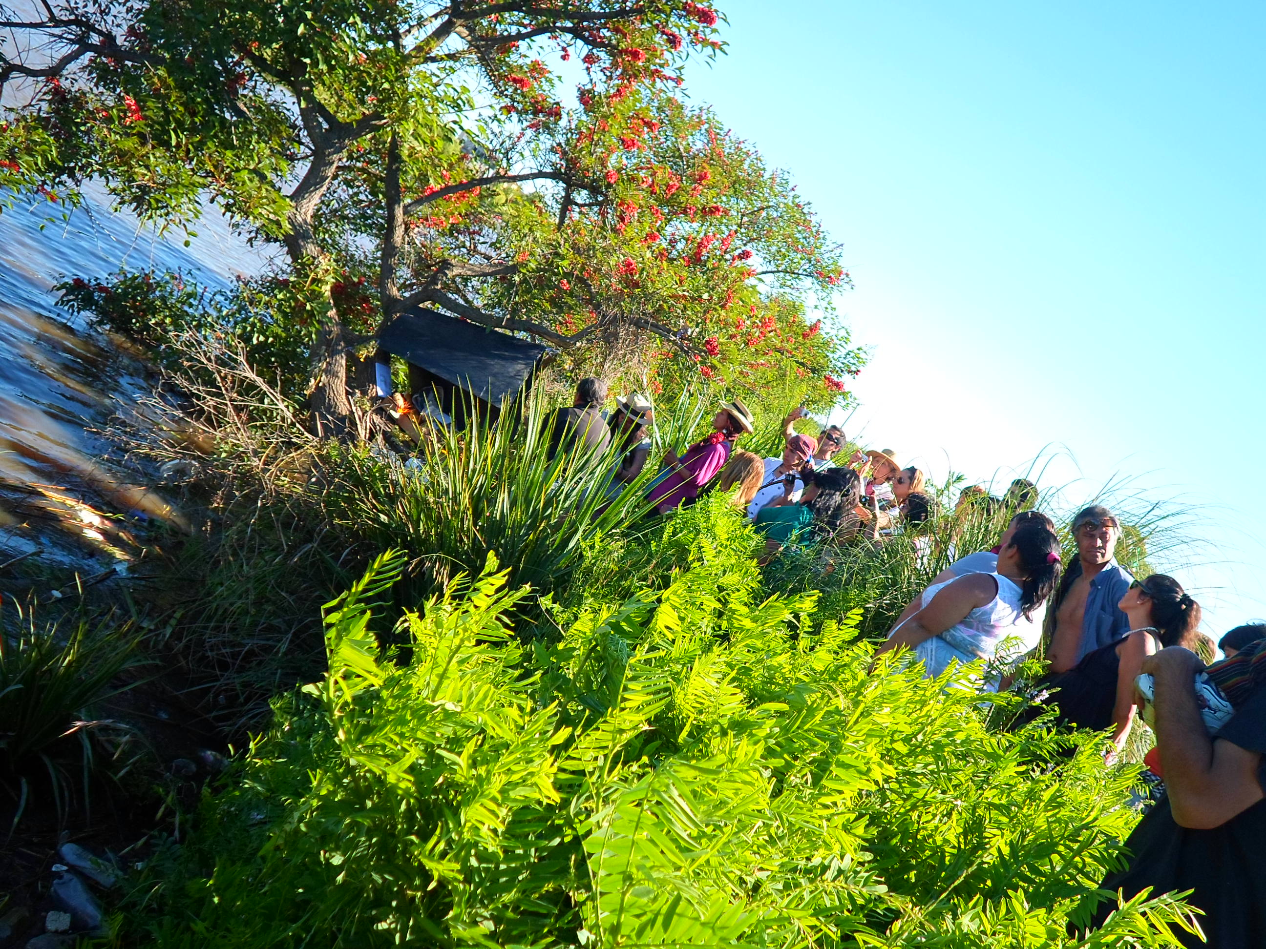 Al costado del río, en un pequeño predio con restos arqueológicos indígenas que resiste a los barrios privados, los ancestros de la actual región metropolitana, fueron homenajeados en Punta Querandí, partido de Tigre. El domingo 3 de noviembre, desde el mediodia, casi un centenar de personas compartieron la comida y luego se acercaron hasta la mesa con ofrendas. Antes de levantar este altar, Pedro Moreira dirigió unas profundas palabras que todos escuchamos con atención: