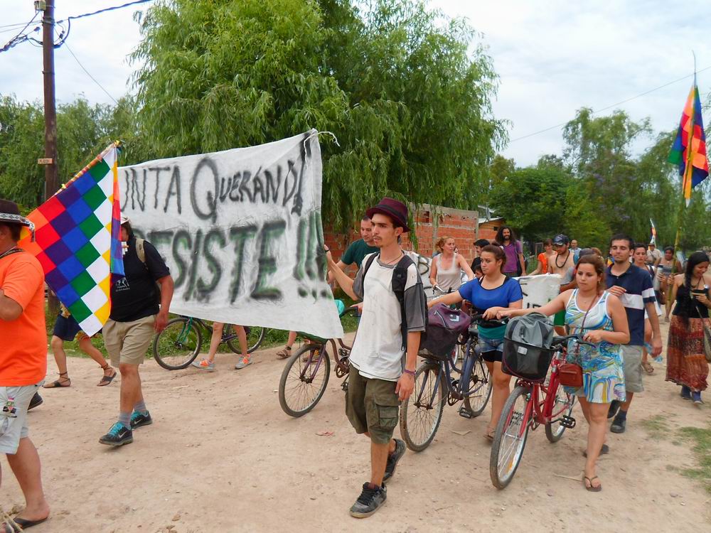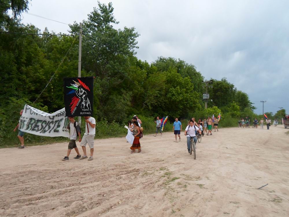 La manifestación fue acompañada por la música del grupo de sikuris Vientos de Manuá y por tres consignas muy claras: «Punta Querandí resiste», «Basta de countries» y «Fuera EIDICO».