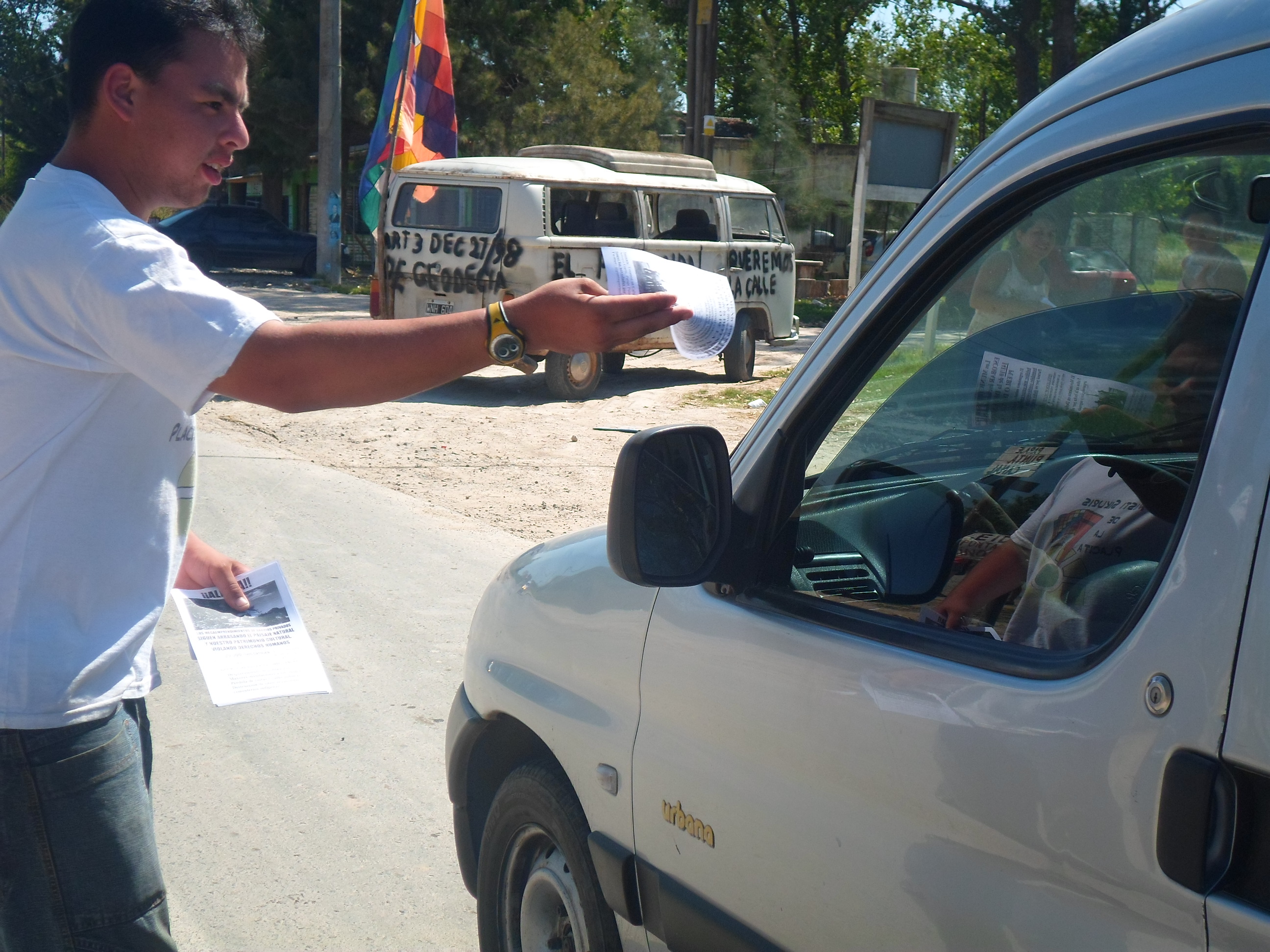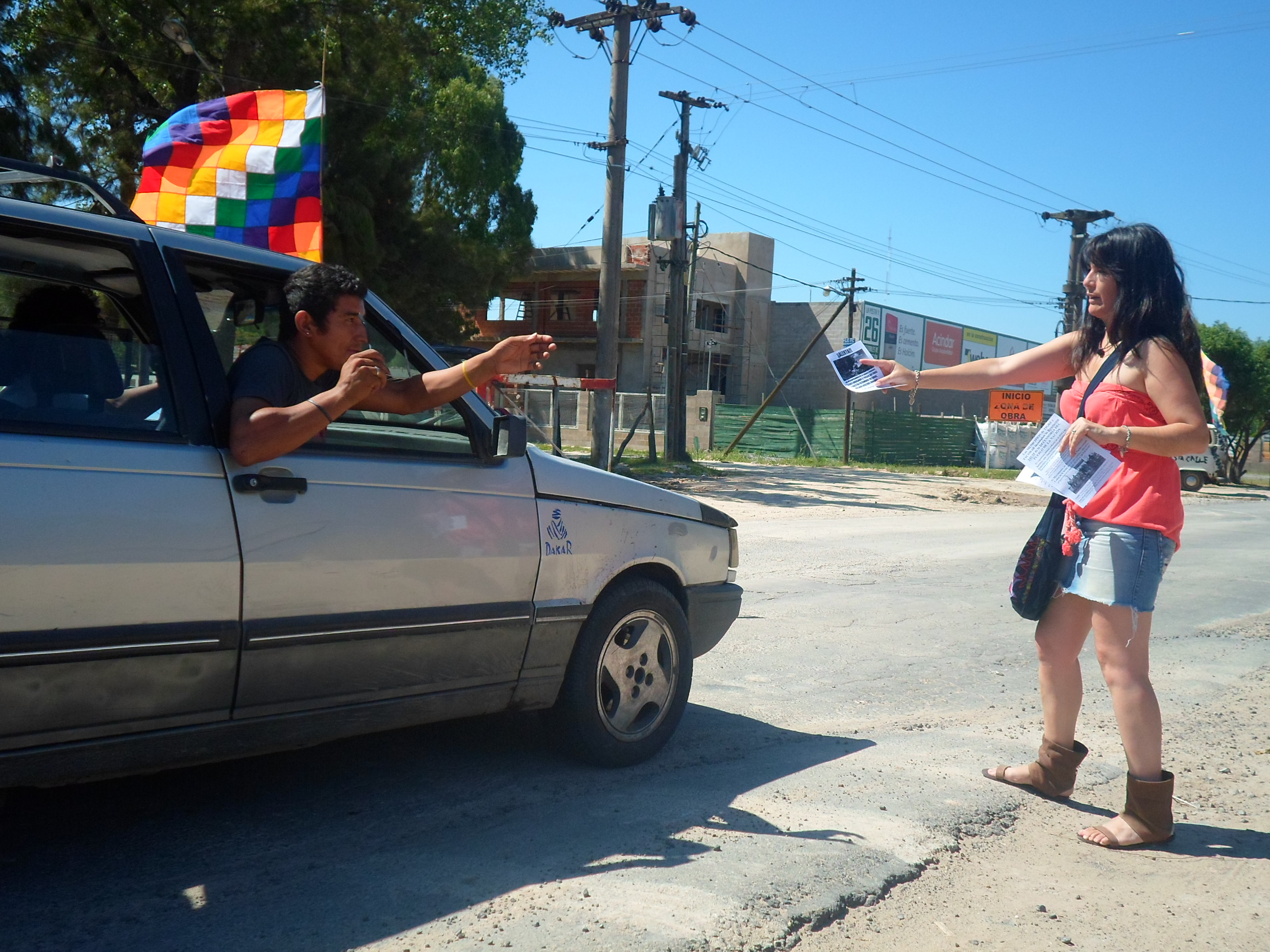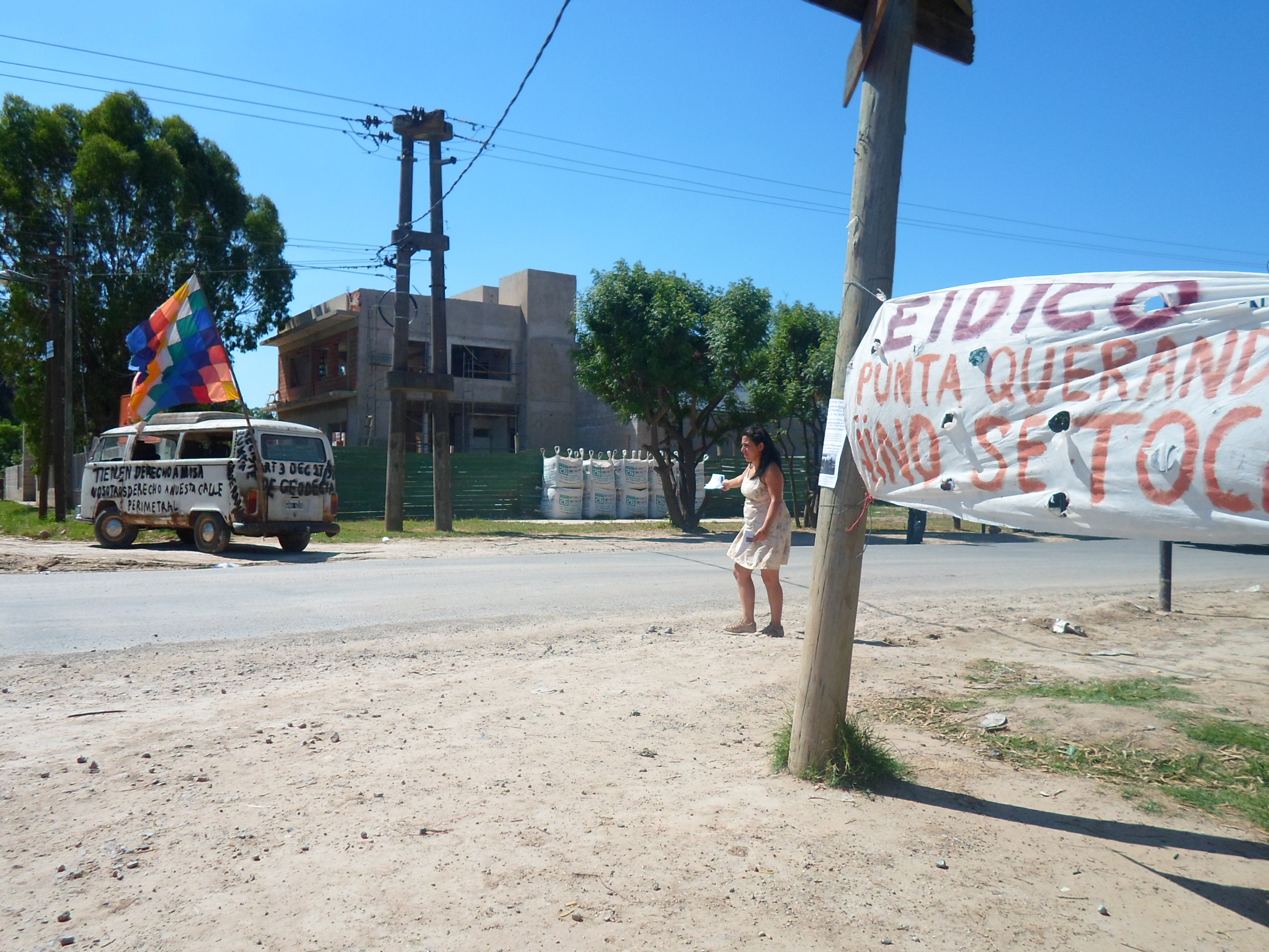 Fotos y breve informe de la jornada del domingo en Ruta 26 y Calle Brasil, por los 5 años de lucha del Movimiento en Defensa de la Pacha por Punta Querandí. Se distribuyeron mil volantes a los automovilistas que pasaron desde las 10 de la mañana hasta las 19 horas en la ruta que une Ingeniero Maschwitz con Dique Luján. Se recibió mucha adhesión de la mayoría de las personas, que acompañaban con bocinazos, pulgares hacia arriba y cada tanto algún grito desafiante: ¡Basta de countries! “¿Ustedes son los del fondo? ¡Muy bueno, sigan adelante!”.
