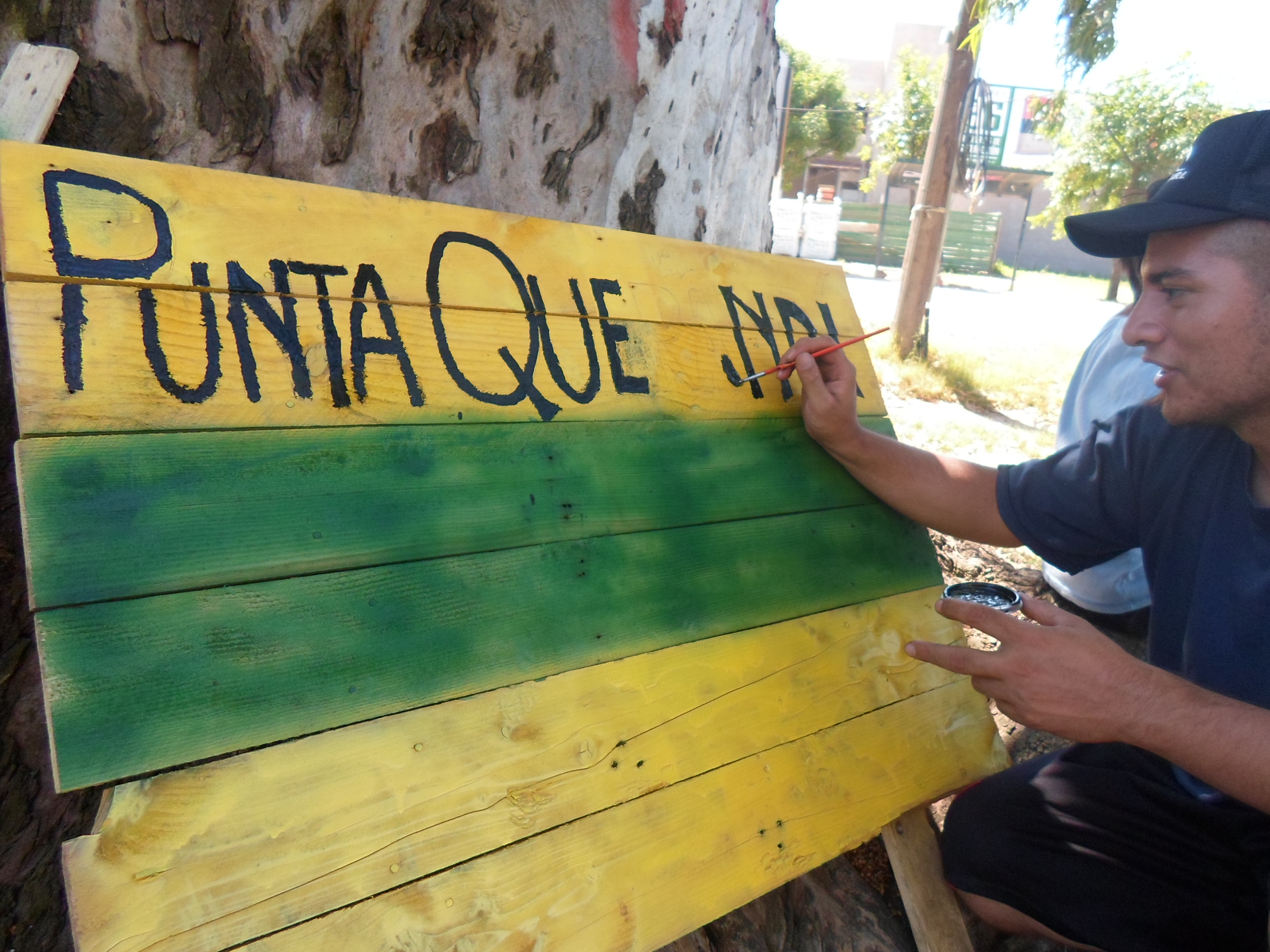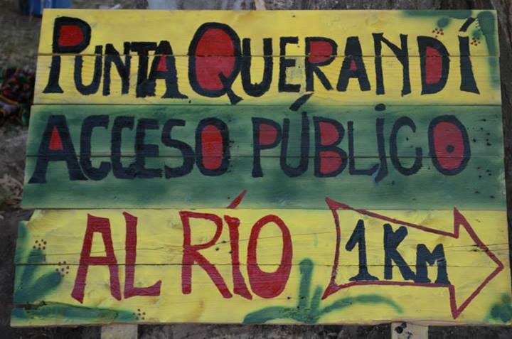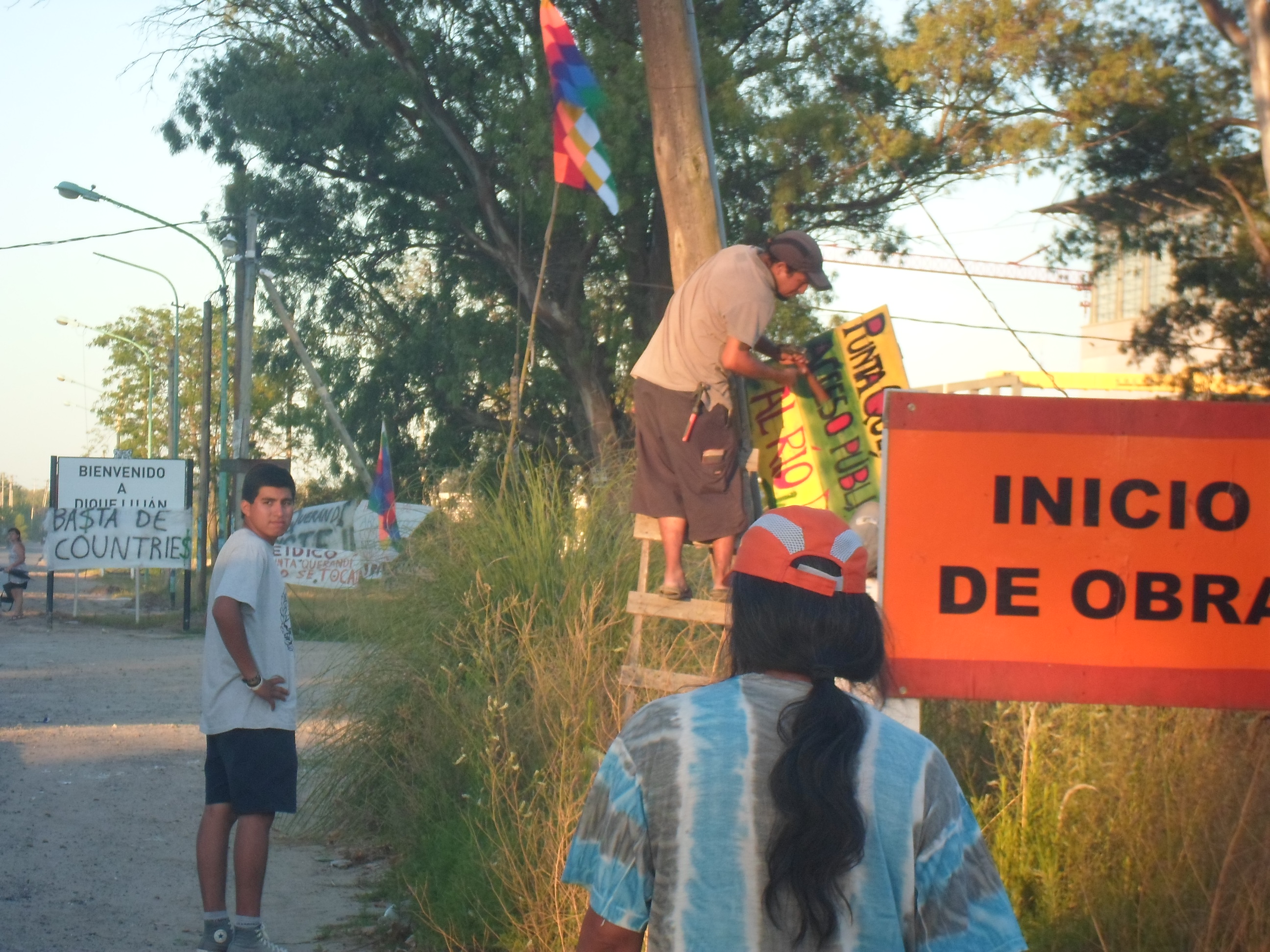 Se colocaron dos bancos para las paradas de los colectivos 291 y 720, y se hicieron dos carteles: uno señaliza “Punta Querandí a un kilómetro” con acceso público al río y otro advierte: “Paisaje natural en peligro por los barrios privados”.