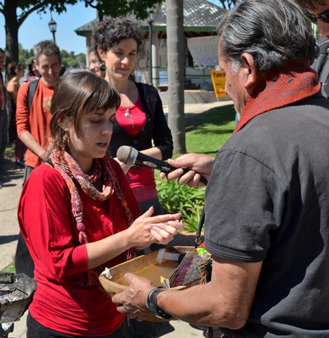 «Nosotros como pueblos originarios de este continente tenemos un previlegio, nuestras raíces están a flor de tierra, si van por Punta Querandí cuando baja el agua ustedes van a encontrar los restos de nuestros abuelos que anduvieron por ahí. Pero también son originarios los europeos que vinieron de otros lugares, tienen que escarbar un poquito más, 2 mil o 3 mil años, ellos también tenían un respeto por la naturaleza».