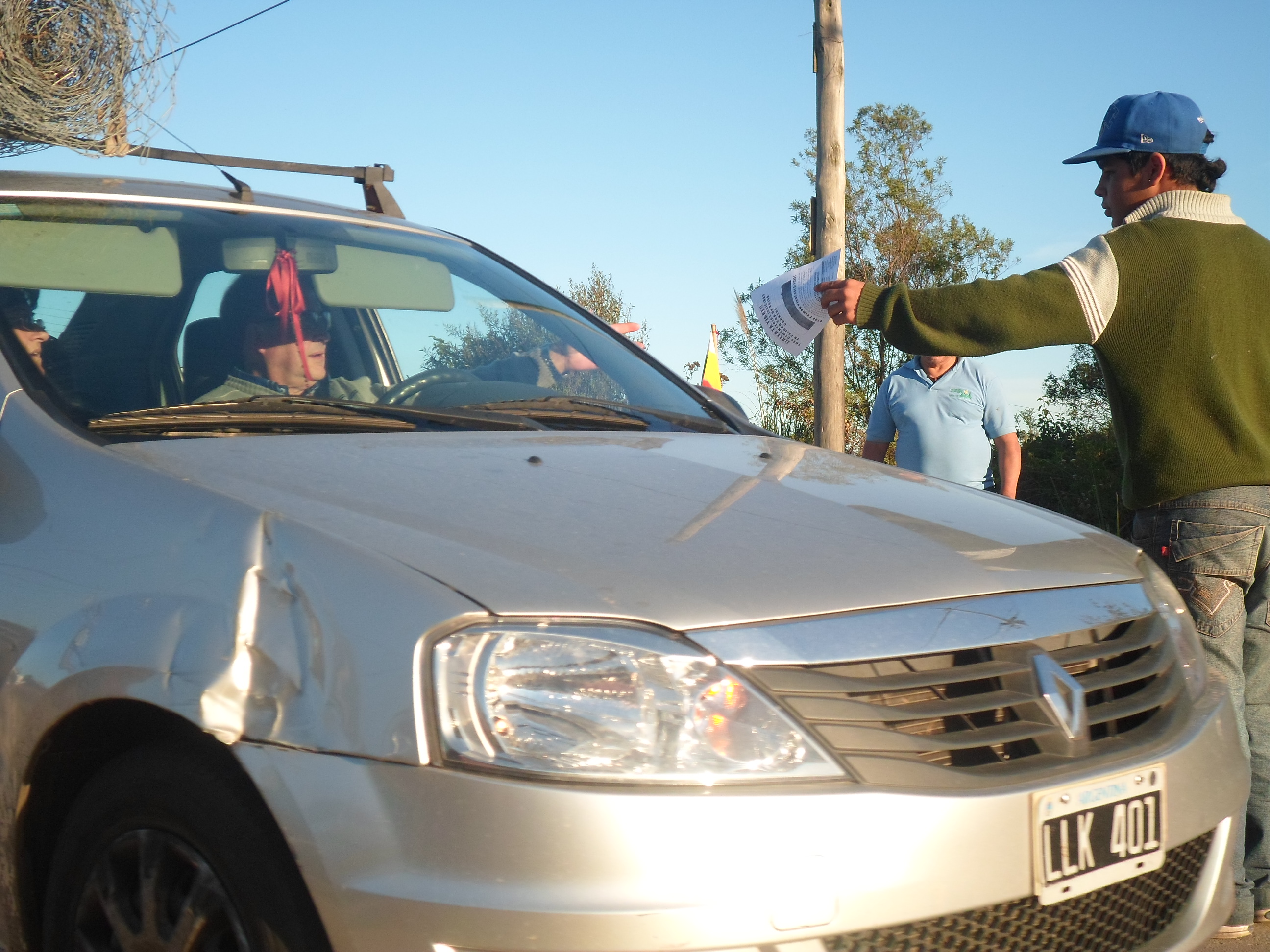 Los mil volantes que imprimimos para la actividad se distribuyeron en tres horas, ya que la mayoría de los automovilistas frenaban para recibir el material con más información sobre la protesta.
