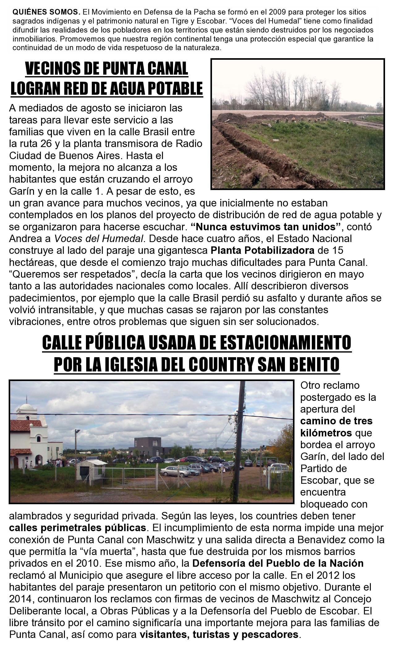 Publicación del Movimiento en Defensa de la Pacha desde los humedales continentales vecinos al Delta del Paraná, en peligro de desaparición por los mega emprendimientos de barrios privados desde los’90.