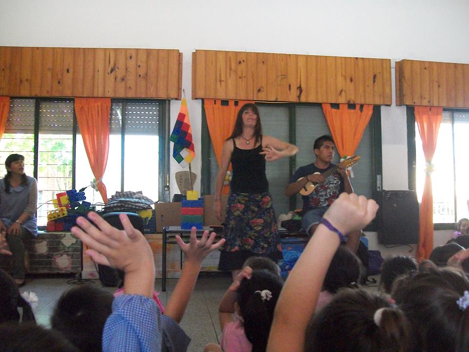 Hablamos de los sikuris y de Vientos de Manuá y les tocamos un poco el siku. Les enseñamos a cantar «Punta Querandí», «Cinco siglos» y «Che Garay». Todos cantaron con nosotros: nenes, maestras y padres.
