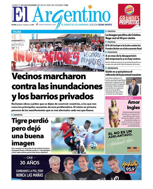 “¡Los privados nos dejan inundados!”, sonaba firme en los gritos de los vecinos de Rincón de Milberg, Las Tunas, Dique Luján, San Diego, La Paloma, Ricardo Rojas, algunos de los barrios en los que el agua entra a las casas, familias enteras que se niegan a acostumbrarse al cambio constante de muebles, electrodomésticos, colchones, frazadas y ropa y que están cansados del barro que queda impregnado en sus paredes.