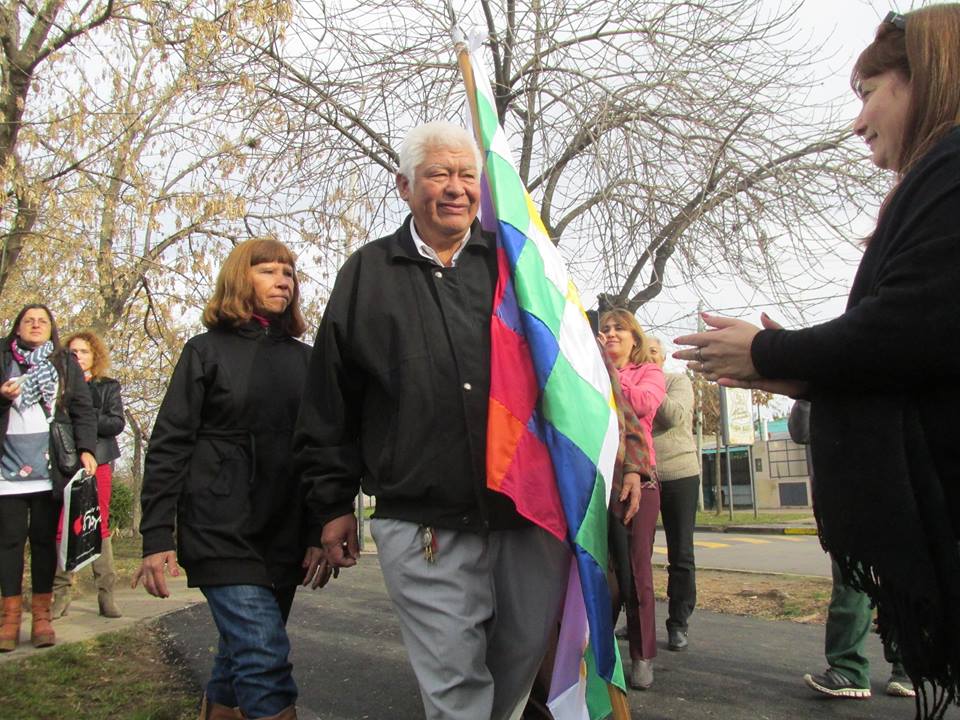 Abanderado del acto con una wiphala –emblema de las culturas ancestrales-, Calé dirigió unas sentidas palabras: “Buenos días para todos, que hermoso día. Gracias que nos pueden reconocer después de 523 años. Nos reconocen que todavía vivimos. Vivimos acá en Ricardo Rojas. Yo vine en 1963 a Buenos Aires buscando una vida mejor. Vengo de Pampa del Indio, donde desgraciadamente no había escuela. Vine a los 16 años, sin estudios, sin escuela, ni siquiera hablar el castellano”.
