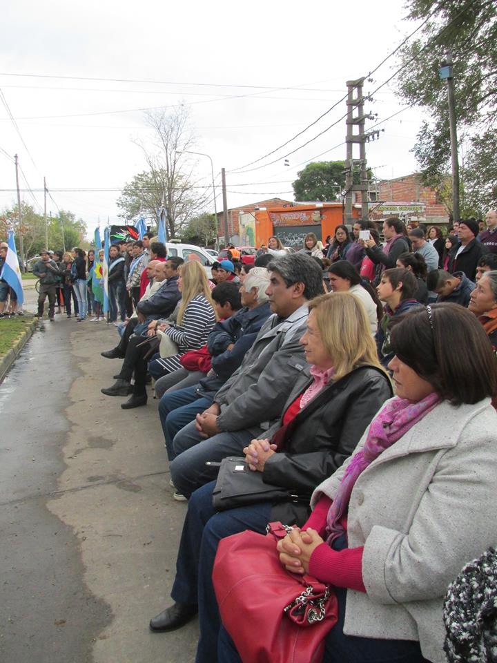 El emotivo acto se realizó en la esquina de la institución, en la calle, con la participación de docentes y directivos de la zona, referentes de la comunidad qom Yecthakay, del MDP Punta Querandí y su grupo de música Vientos de Manuá, estudiantes de la Escuela Secundaria 21 de Malvinas Argentinas y vecinos del barrio. De la Provincia asistió el hermano quechua Fortunato Vilca, Director de Fortalecimiento y Desarrollo Intercultural del Consejo de Asuntos Indígenas. De las autoridades locales estuvieron el delegado de Ricardo Rojas y el concejal Daniel Macri (FR), vecino de la localidad.