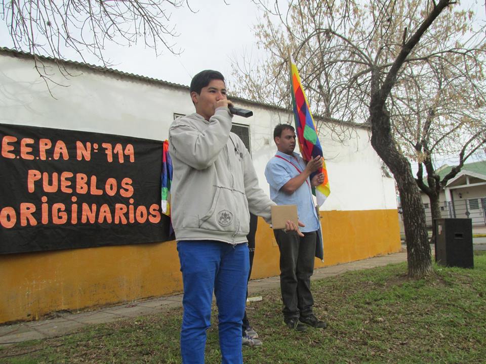 El discurso más importante fue del hermano qom Donato Calé, miembro de la comunidad Yeckthakay, quien comenzó a cursar la primaria en la 714 y fue la “inspiración” para el nombre. De hecho, la primera propuesta era que la escuela se llame “Donato Calé”, pero él insistió en que debía reivindicarse a todos los pueblos.