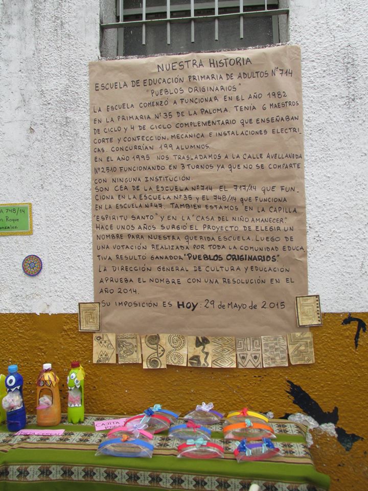 La Escuela de Educación Primaria de Adultos Nº714 comenzó a funcionar en 1982, en el edificio de la Primaria 35 del barrio La Paloma (El Talar). En 1995 se trasladó adonde funciona en la actualidad, al lado de la plaza de Ricardo Rojas, en Avellaneda 2510, con tres turnos. “Hace unos años surgió el proyecto de elegir un nombre para nuestra querida escuela. Luego de una votación realizada por toda la comunidad educativa resultó ganador ‘Pueblos Originarios’. La Dirección General de Cultura y Educación aprueba el nombre con una resolución en el 2014”, se leía en una de las cartulinas pegadas en la escuela.