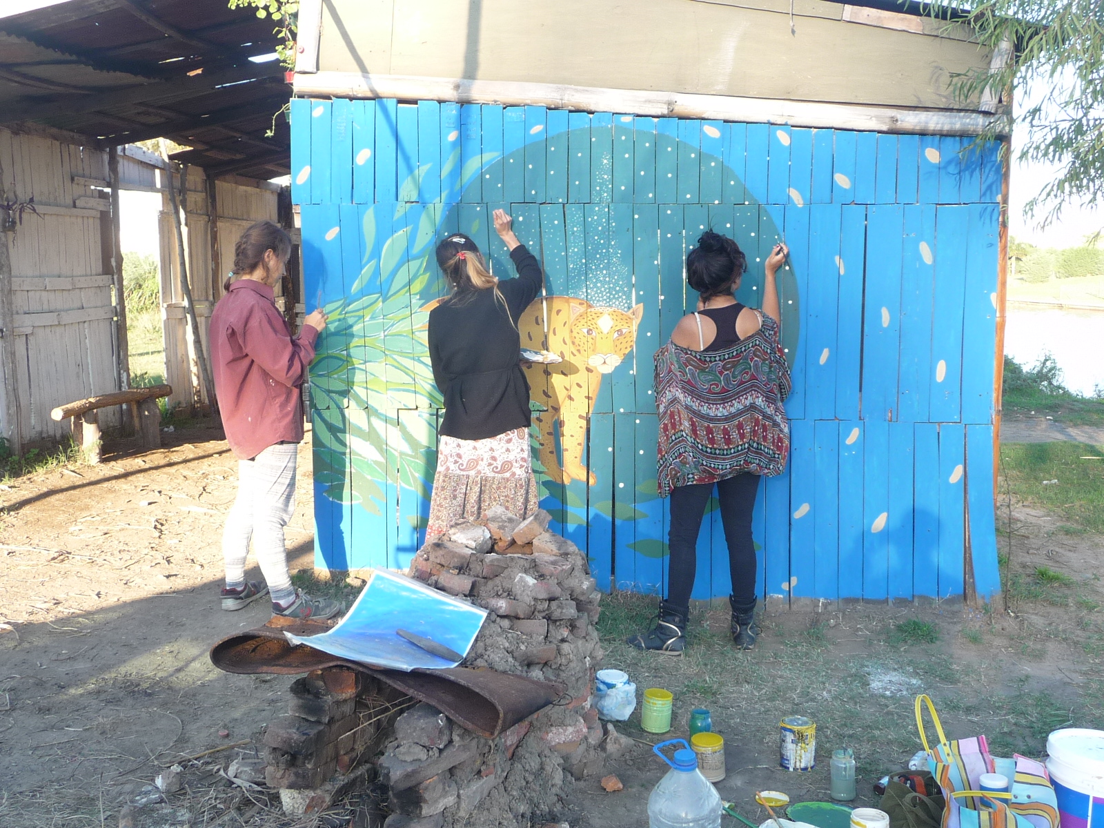 Además, Florencia Borowski vino a continuar el mural del yaguareté en el Salón Comunitario Cacique Manuá, que había iniciado unos días antes, tarea en la cual colaboraron algunas compañeras.