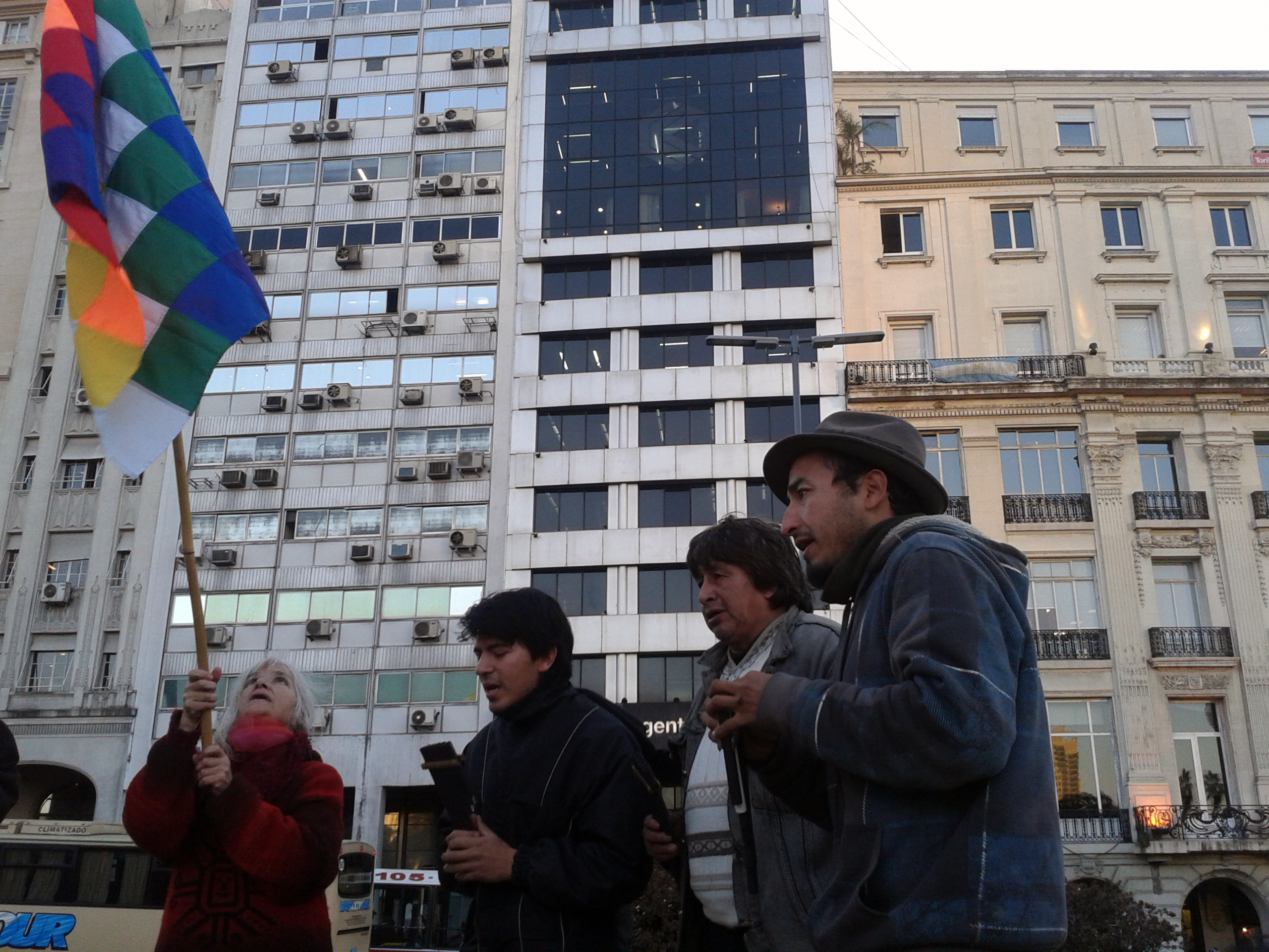 La pequeña manifestación fue a las 11hs, luego de estar esperando desde las 9 de la mañana en la Plazoleta 11 de junio de 1580, ubicada al costado de la Casa Rosada, en Avenida Leandro Alem y Rivadavia. Participamos vecinos de la Ciudad y el Gran Buenos Aires que pertenecemos a los pueblos milenarios quechua, qom, guaraní y quilmes, junto a vecinos no indígenas que tampoco celebran el genocidio.
