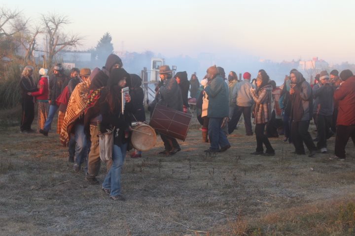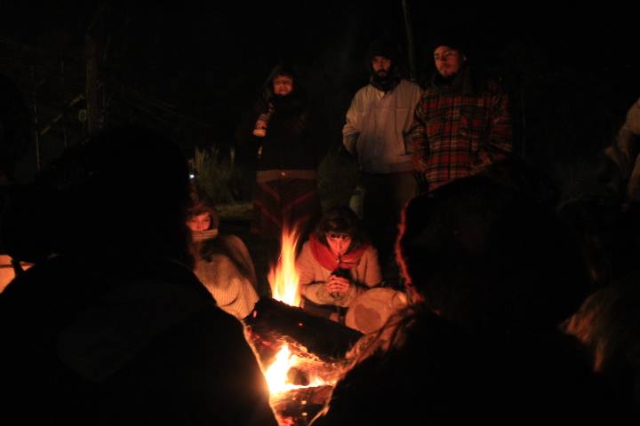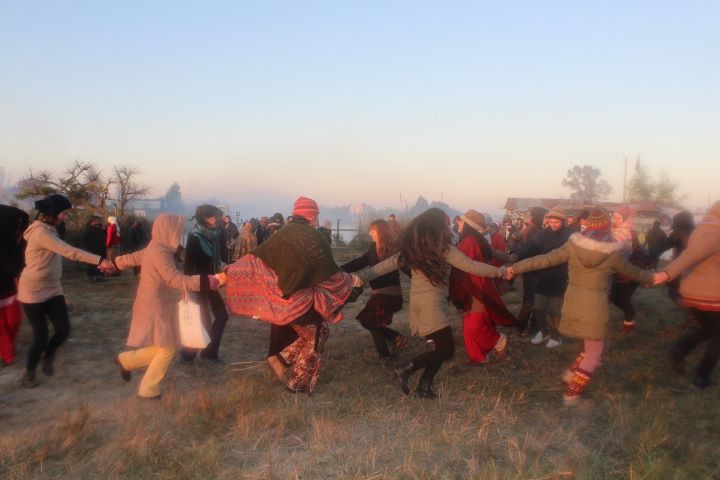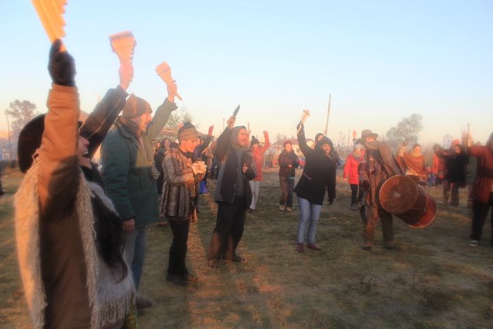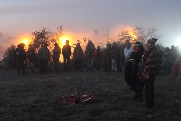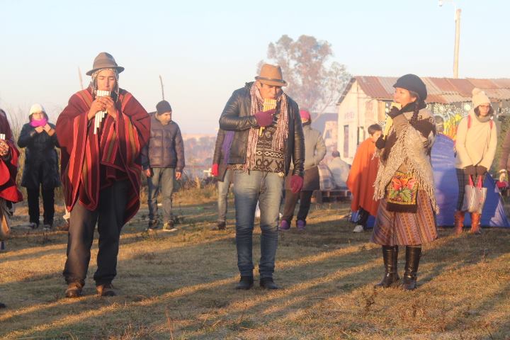 Cerca de las 8 de la mañana, más de un centenar de personas saludaron al Sol, en una ceremonia guiada por Fortunato Vilca del Pueblo Kolla y Relmú Ñanku del Pueblo Mapuche. La madrugada había transcurrido en los fogones con el intercambio de experiencias, debates, reflexiones y música autóctona.