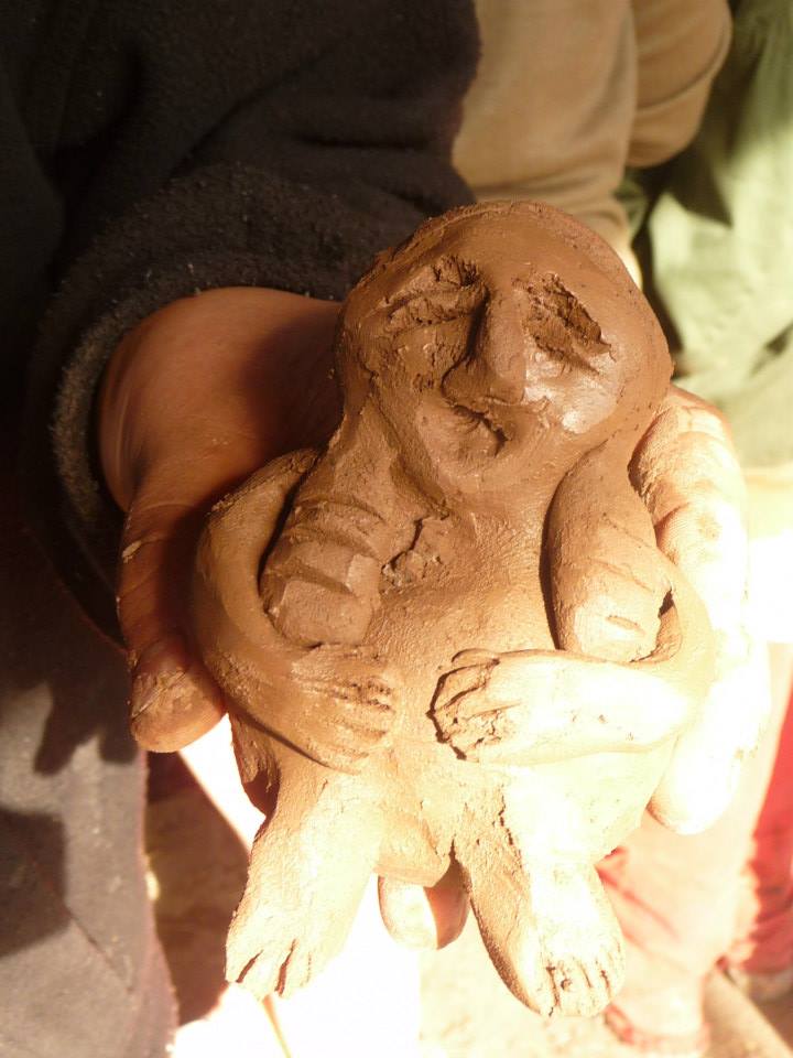 Según nos explicaron desde Ukupacha, “nuestra propuesta fue levantar pachamamas (representaciones de la naturaleza) utilizando la arcilla del lugar. Cómo símbolo de agradecimiento por el trabajo que hacemos. Pero nos encontramos con la presencia de cuatro familias del lugar, que con mucho entusiasmo le dieron significado a nuestra presencia. Valorar y reencontrarse con la riqueza del trabajo del alfarero. Hacer sus propios útiles y sentir la creatividad y la autonomía de aprehender o reencontrar un oficio ancestral”.