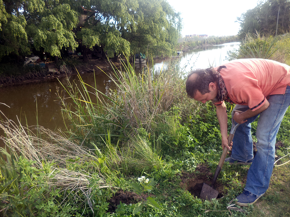 El domingo 18 de octubre se realizó una amplia jornada en el sitio público y sagrado de los pueblos originarios. Además de la habitual limpieza de la costa del Canal Villanueva y los trabajos en el techo de paja del quincho, la novedad fue que comenzamos a reforestar el camino del Arroyo Garín que une la calle Brasil con la vía muerta, uno de los accesos a Punta Querandí.