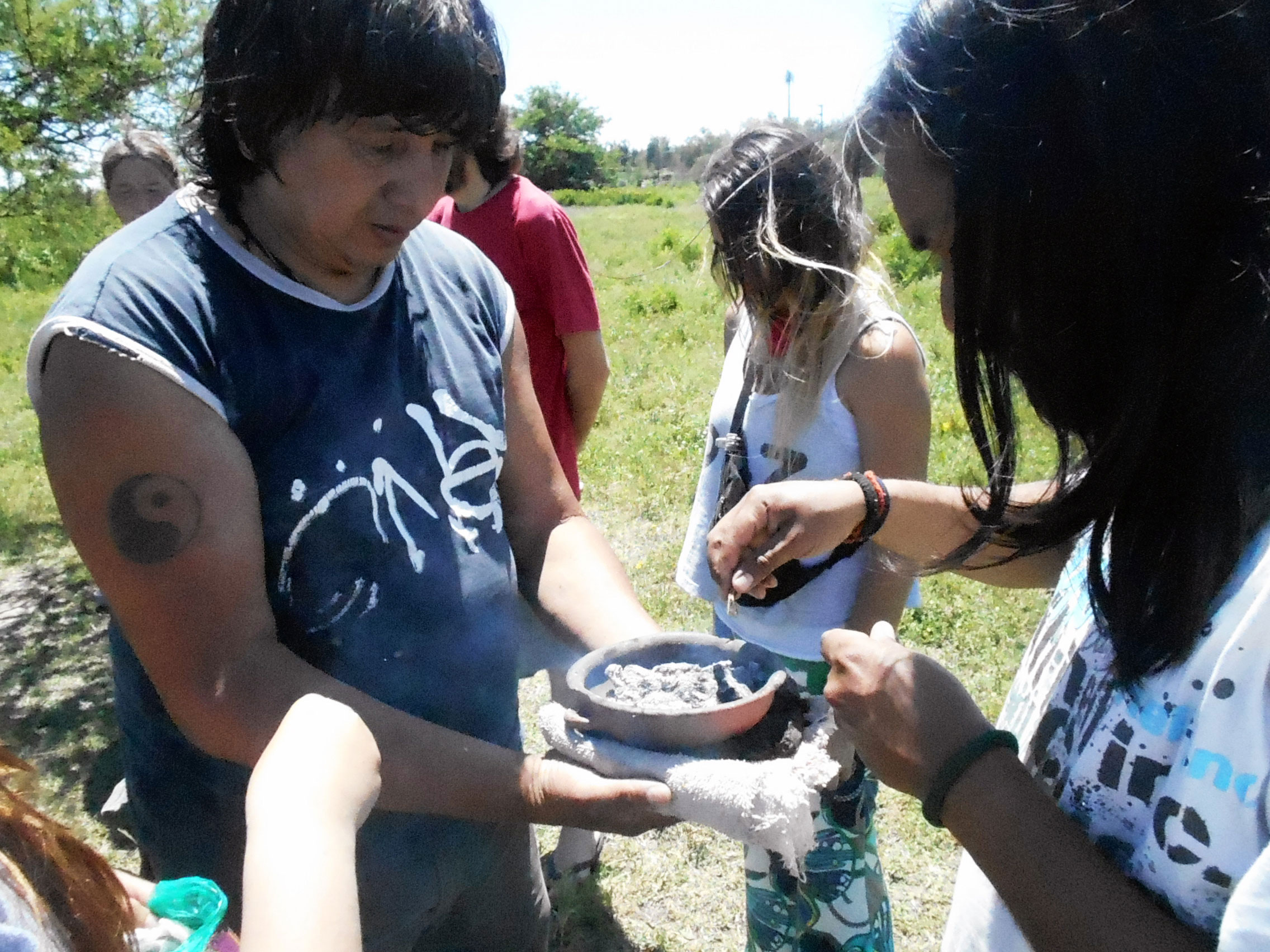 Durante dos horas, permanecimos a un costado de un sector alambrado que correspondería a uno de los tres sitios arqueológicos reconocidos en el campo. Allí, prendimos un fuego y realizamos una sahumereada para conectarnos con los espíritus del lugar, ceremonia que en esta ocasión fue guiada por Santiago Chara por ser el referente de la comunidad indígena más cercana (su barrio toma el nombre del mismo arroyo que bordea a La Bellaca), con la ayuda de su hija más pequeña. “Me puso muy contento que la pude incluir a la más chica de mi familia”, contó.
