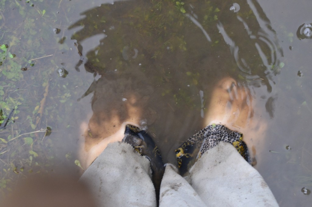 Mucha agua y barro para que la naturaleza sea parte de nuestra piel. «Durante nuestra visita en Punta Querandí experimenté una sensación de hogar. Ese lugar donde el tiempo se detiene en un Nosotres. Donde la lluvia es acogedora. Donde el fuego sostiene vivas la memoria y la lucha por lo que constituye a esta comunidad. Donde los pies en el barro producen esa conexión tan vital con la naturaleza», explicó Delfina.