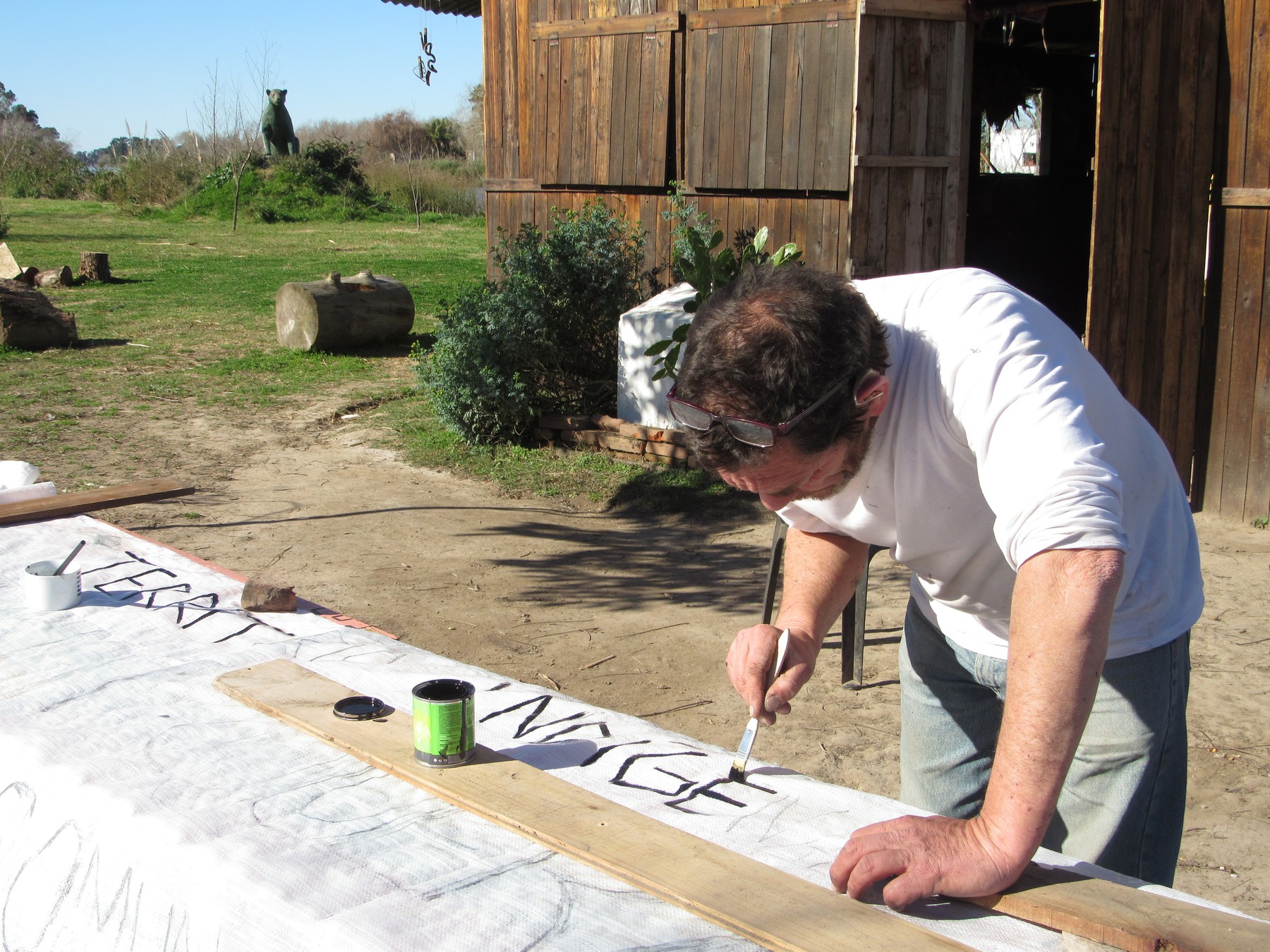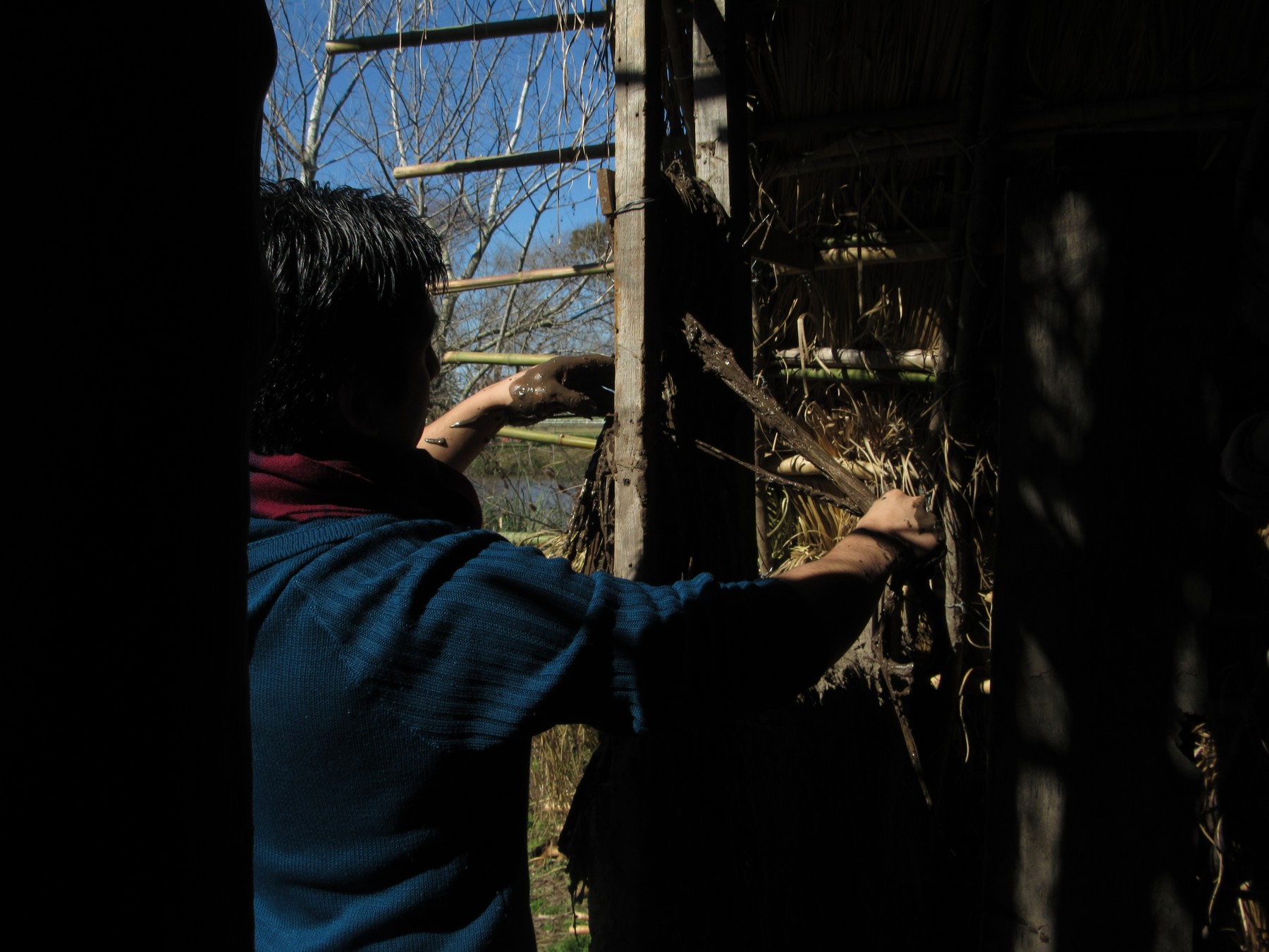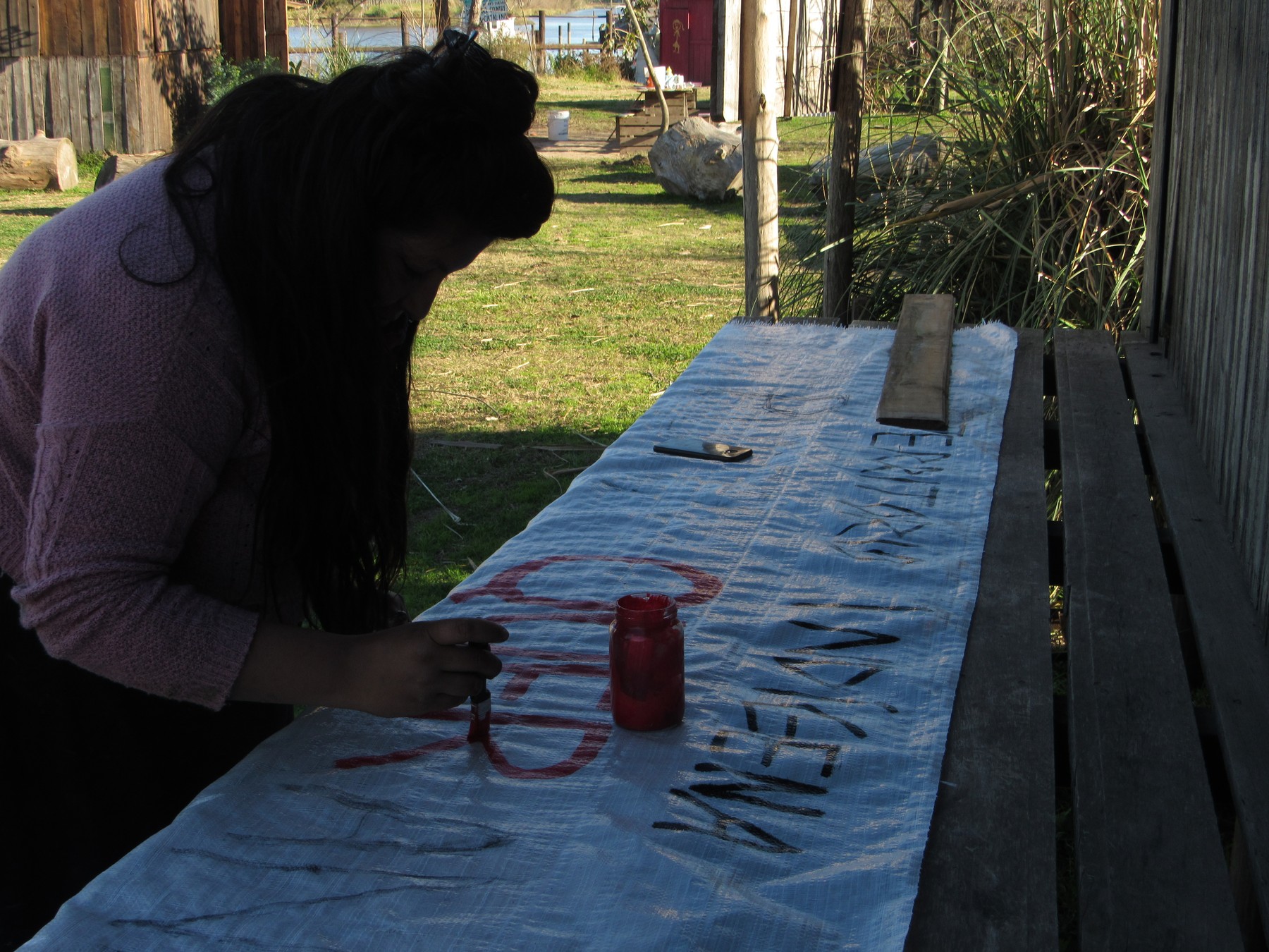 El domingo 4 de agosto, con la ayuda de algunas visitas que se arremangaron para esforzarse junto a la comunidad, seguimos construyendo la última pared de barro de la Maloka (vivienda comunitaria) y pintamos una bandera para la movilización del próximo miércoles 7 de agosto en Capital Federal, donde marcharemos con la Confederación de Trabajadores de la Economía Popular (CTEP) Tigre.