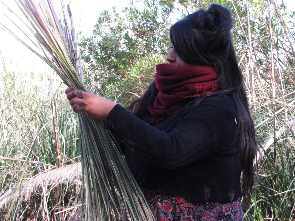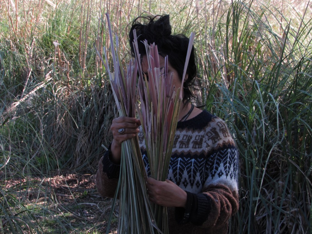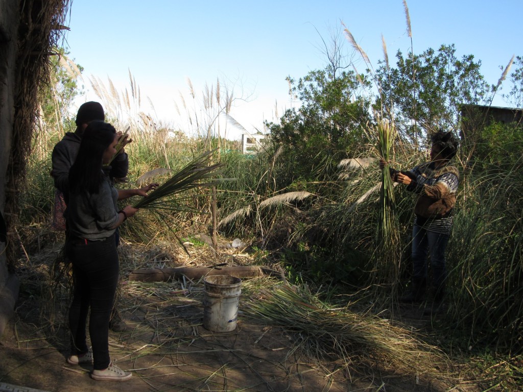 Mientras algunas compañeras de Punta Querandí regaban el vivero y la huerta comunitaria, comenzamos a preparar la paja brava para hacer uno de los aleros de la Maloka, para evitar que las lluvias afecten las paredes de barro.