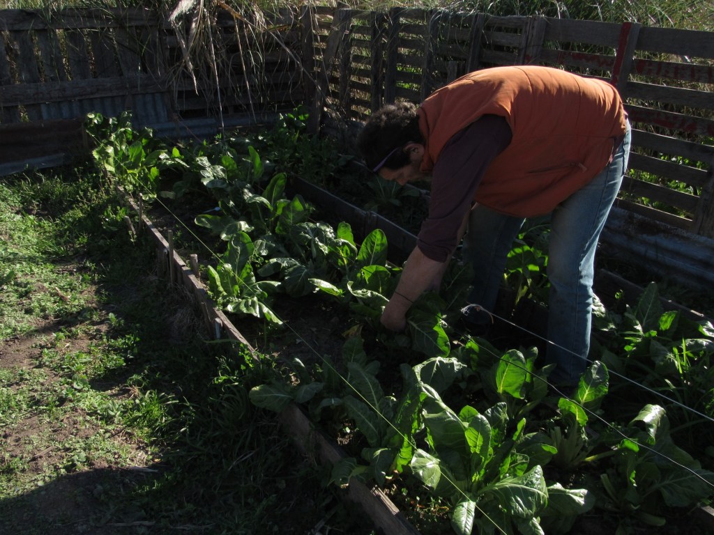 Para finalizar la jornada, se realizó la primera cosecha de acelga de la huerta.
