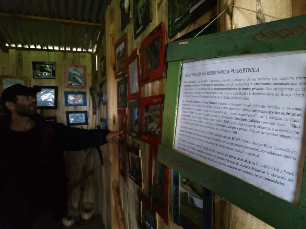 Punta Querandí es una comunidad indígena pluriétnica enclavada entre los barrios privados, en una zona ancestralmente habitada por querandíes, chanás y guaraníes. El empresario que pretende adueñase del territorio es uno de los principales responsables de la destrucción del equilibrio ambiental en la Cuenca del Río Luján a través de la construcción de grandes complejos de countries náuticos que arrasaron miles de hectáreas de humedales. Este boom inmobiliario iniciado a fines de los ’90 y sostenido durante las últimas dos décadas, generó un aumento de las inundaciones, el desplazamiento de pobladores históricos y la devastación de cementerios originarios anteriores a la conquista europea.