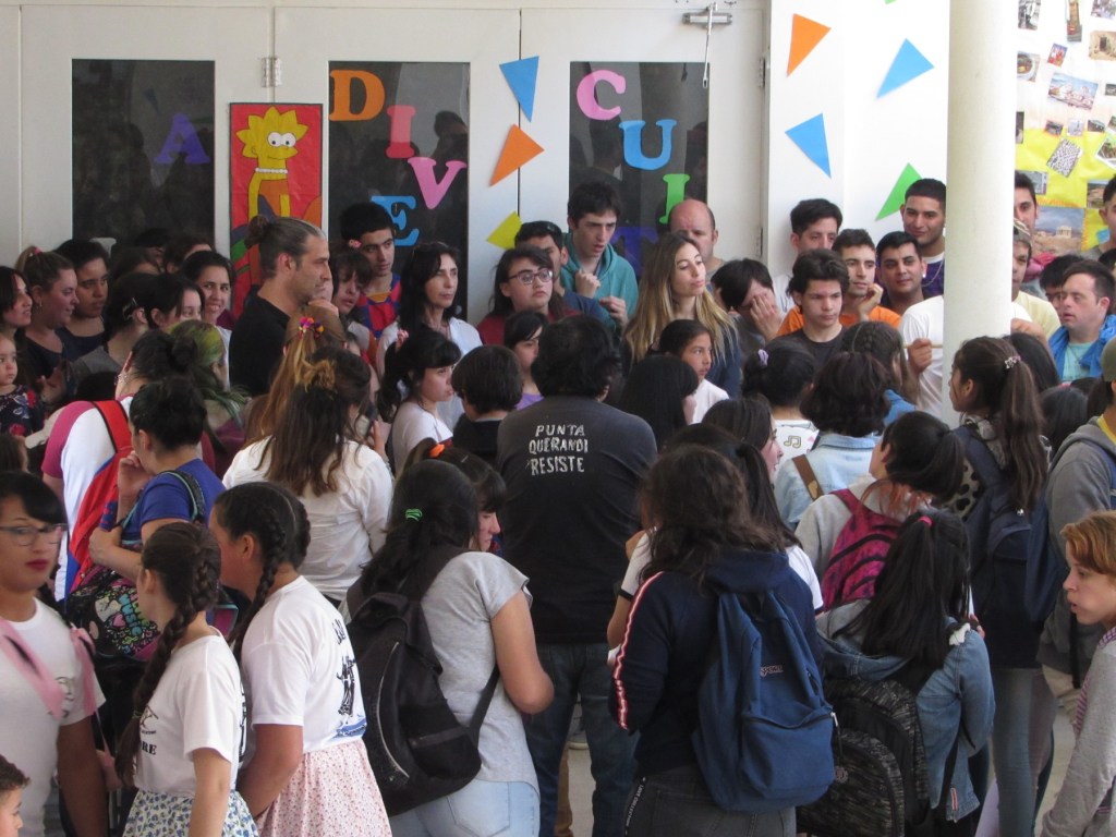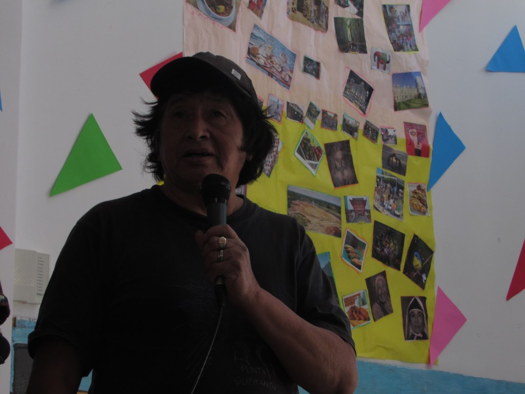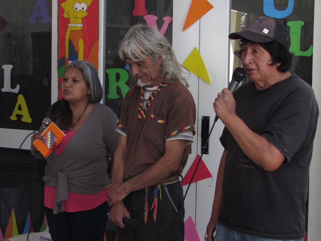 El encuentro comenzó con una caminata por el pueblo. «Nos trasladamos por la calle libremente, nos pusimos a los costados del puente y cantamos una canción», relató la profesora de música, una de las organizadoras de la jornada. Ya en el establecimiento, cerca del final del acto, tomaron el micrófono los representantes de las comunidades originarias, Santiago Chara, Reinaldo Roa y Cintia López.