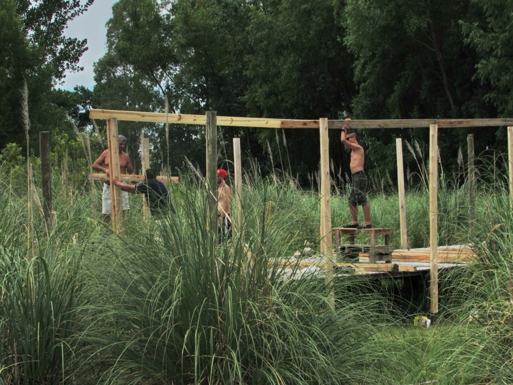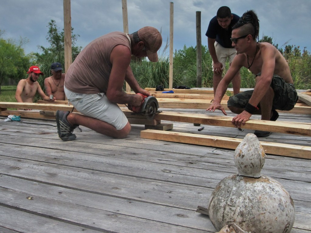 Las tareas estuvieron centradas en el futuro Taller de trabajo de la comunidad, que tendrá por objetivo el desarrollo económico de Punta Querandí mediante la producción de artesanías y materiales a través de la carpintería, la cestería y otros oficios.