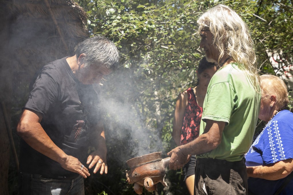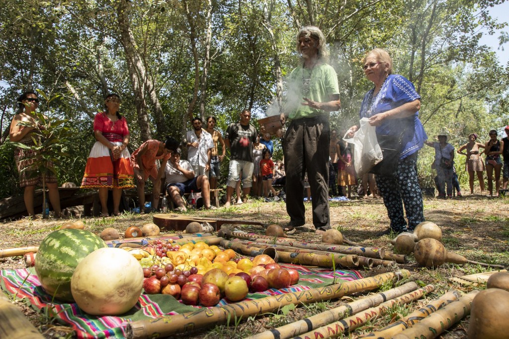 La ceremonia fue guiada por Reinaldo Roa del Pueblo Guaraní y del Consejo de Ancianos de Punta Querandí, acompañado por Gladis Roa, representante de la Comunidad Urbana Guaraní “Mbo’ehára Jasy Rendy” con sede en José C..Paz.