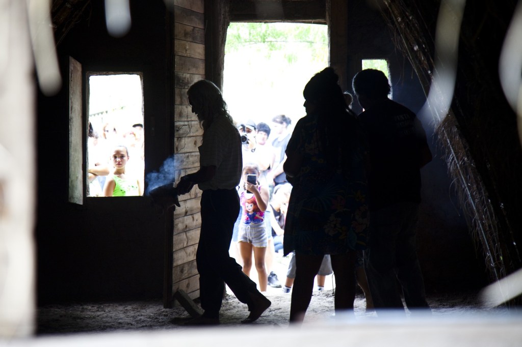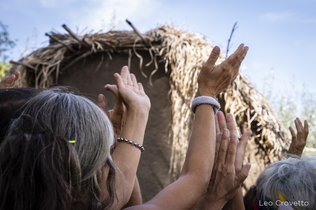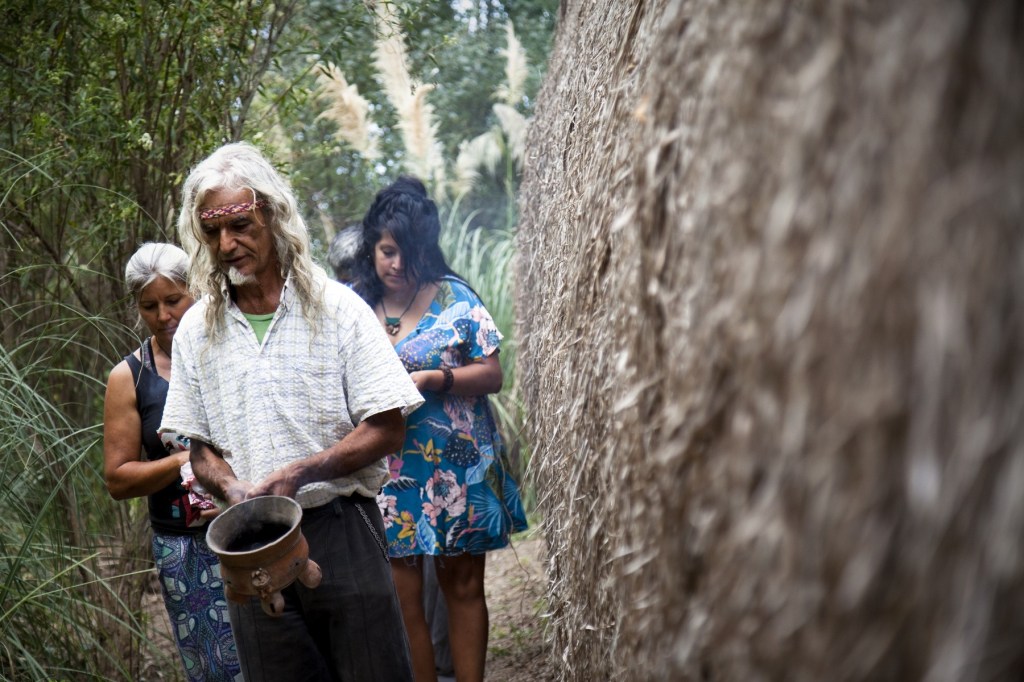 Antes de dar por inaugurada la Maloka, una construcción de paja brava que llevó casi dos años de trabajos, se realizó una pequeña ceremonia guiada por integrantes del Consejo de Ancianos (Reinaldo Roa y Santiago Chara) y del Consejo de Mujeres (Jésica Zalazar y Rosiene Bissoni) de Punta Querandí.