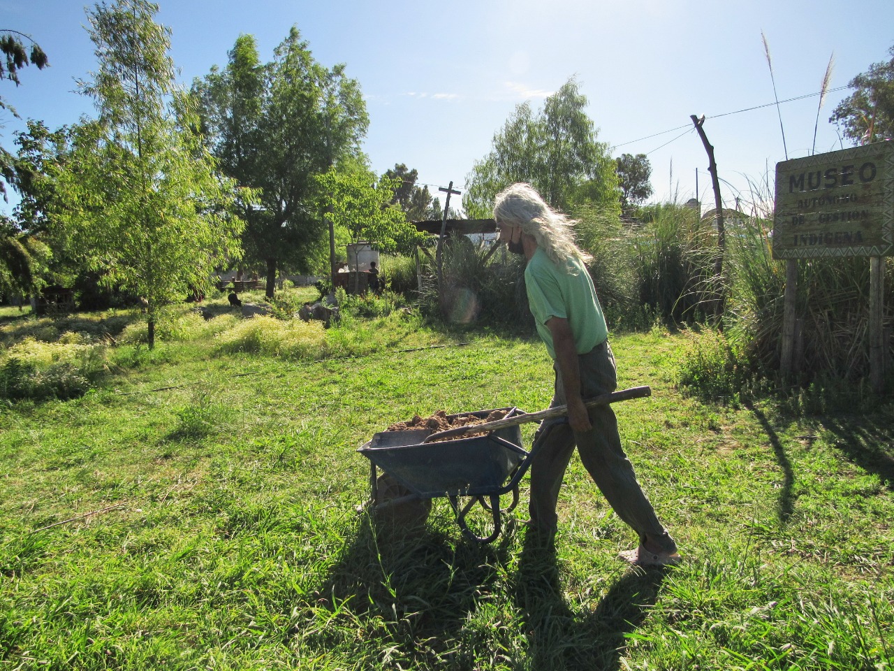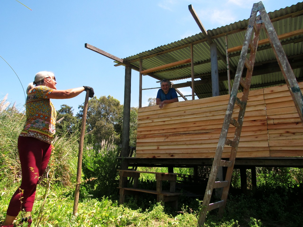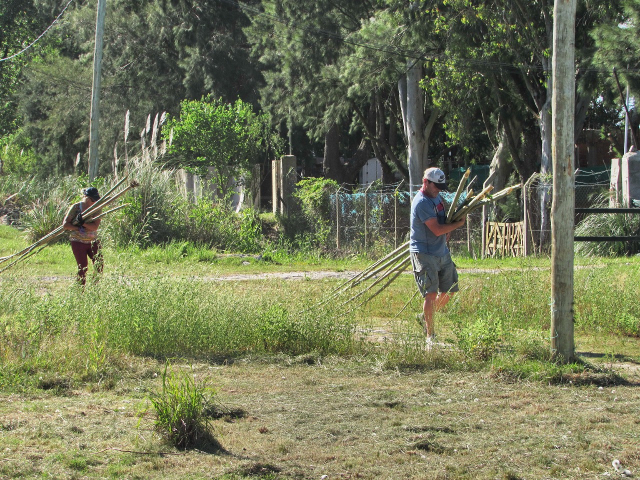 El domingo 15 de noviembre, un día antes de la audiencia donde el intendente Julio Zamora firmó el Convenio de Propiedad Comunitaria, continuamos avanzando en la construcción del Taller y el nuevo gallinero, además de cortar cañas para las tomateras de la huerta y cortar el pasto, entre otras actividades.