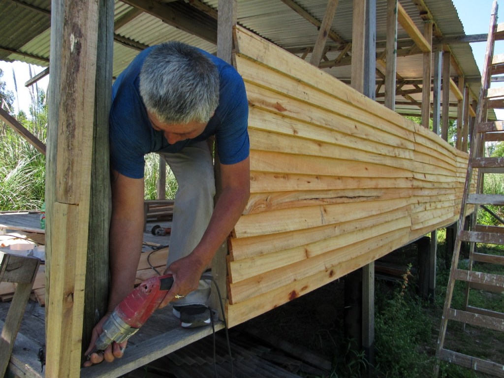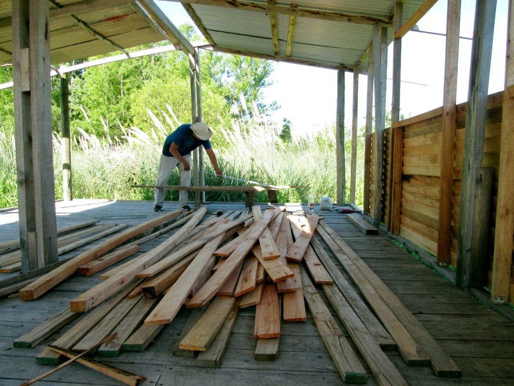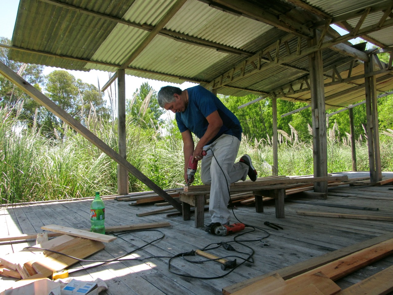 El domingo 15 de noviembre, un día antes de la audiencia donde el intendente Julio Zamora firmó el Convenio de Propiedad Comunitaria, continuamos avanzando en la construcción del Taller y el nuevo gallinero, además de cortar cañas para las tomateras de la huerta y cortar el pasto, entre otras actividades.