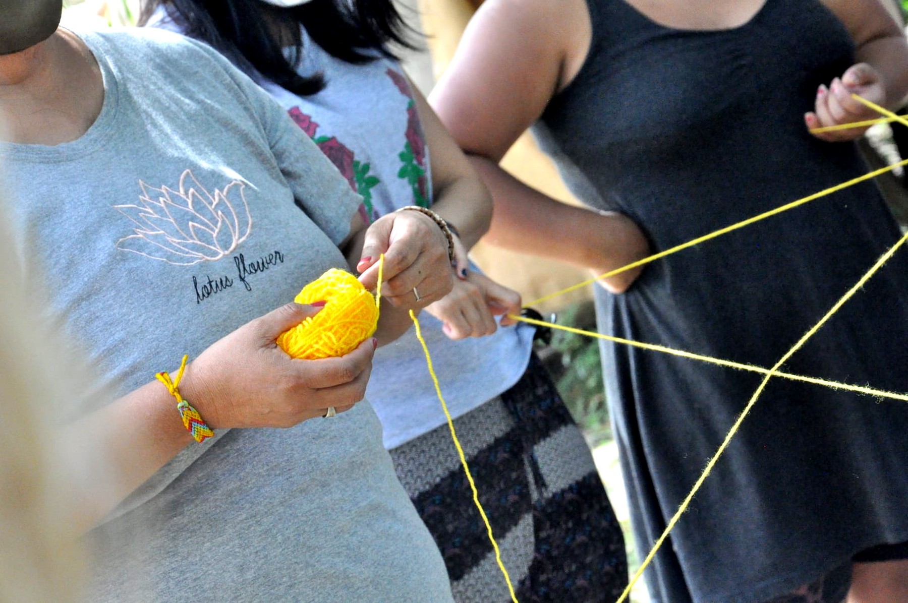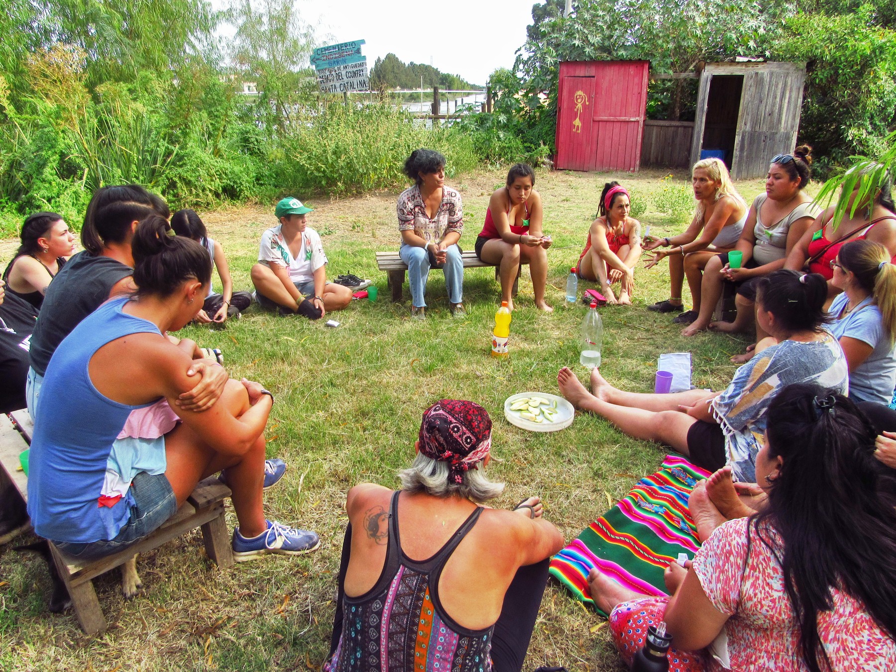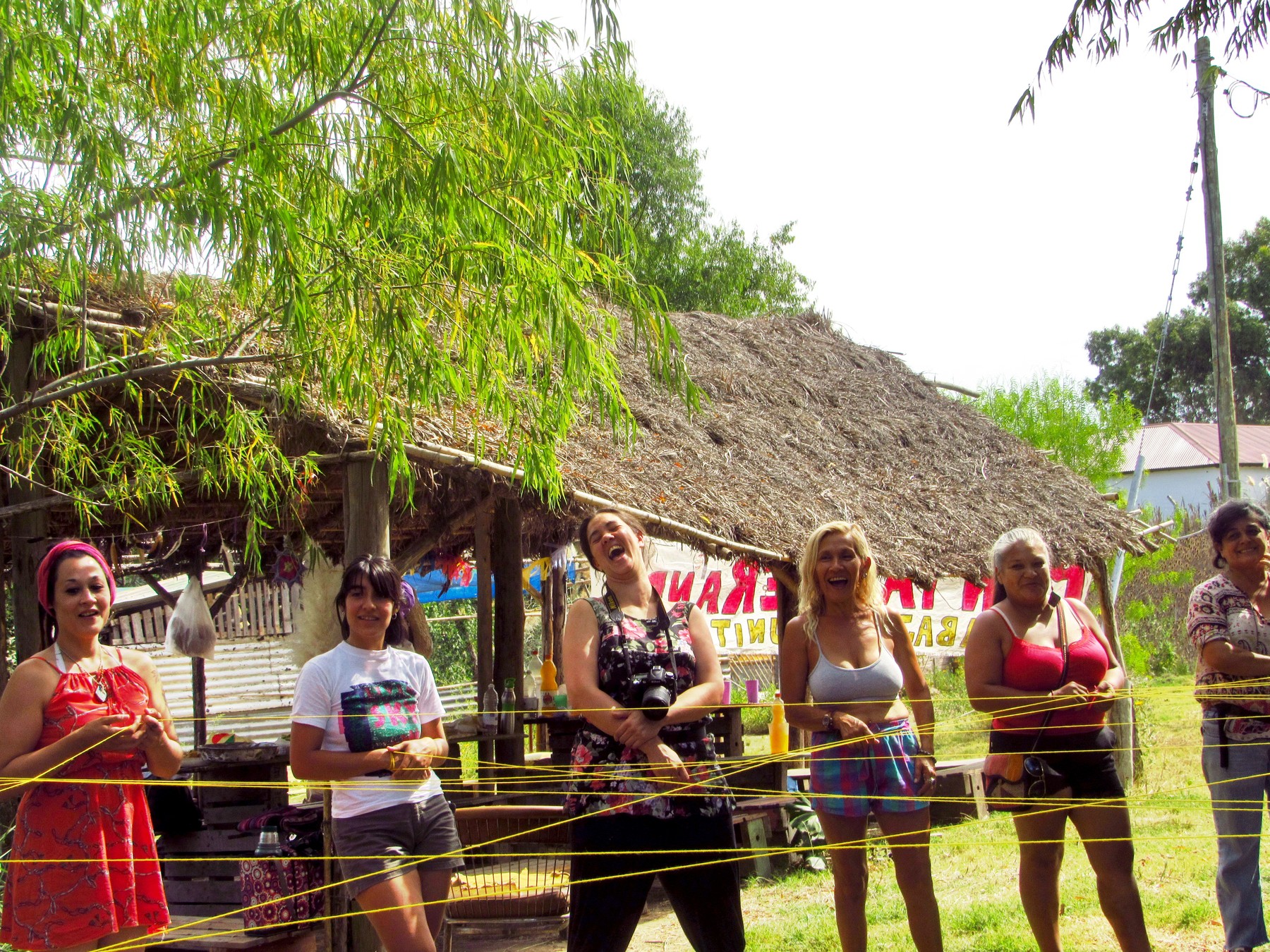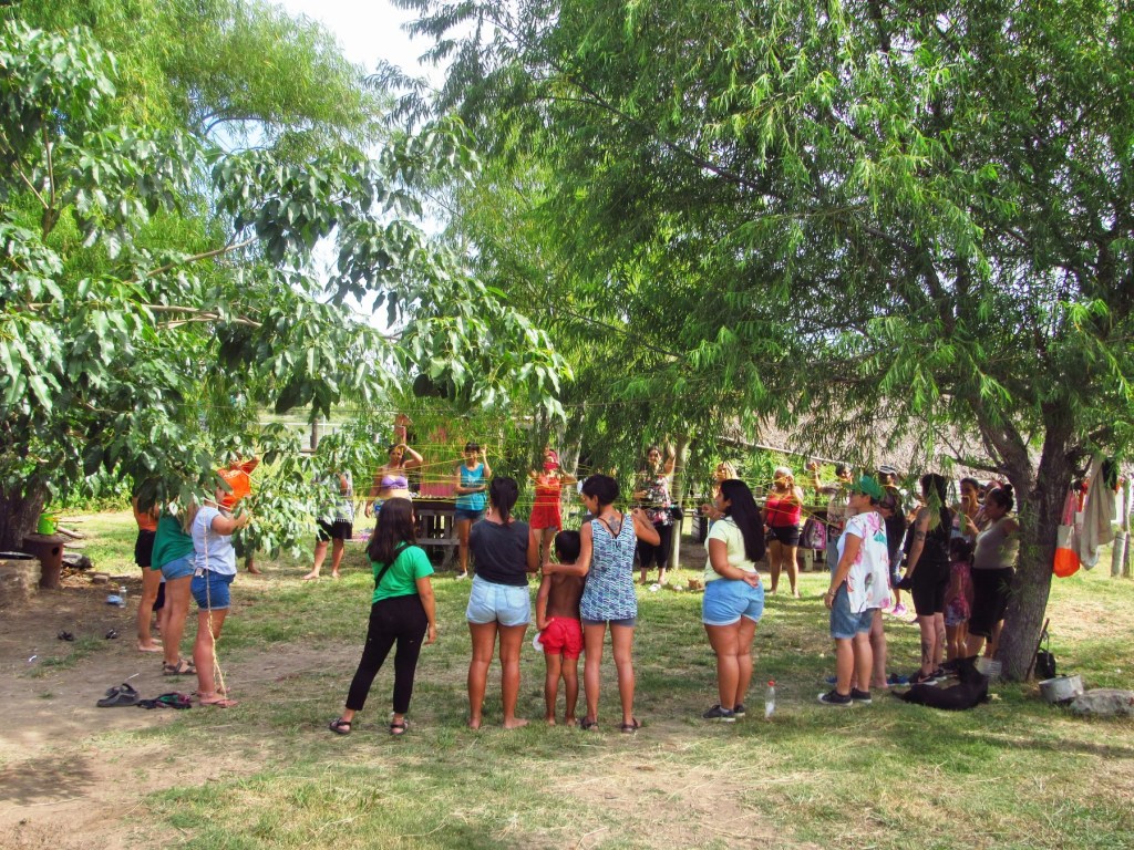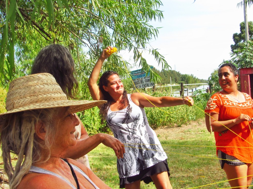 Desde las 10 comenzaron a llegar mujeres de distintos puntos de zona norte y oeste para luego compartir un Apthapi, comida comunitaria. Después vino una presentación para la cual se utilizó una lana, con el significado de la misma: comenzar a “tejer” el vínculo entre mujeres.