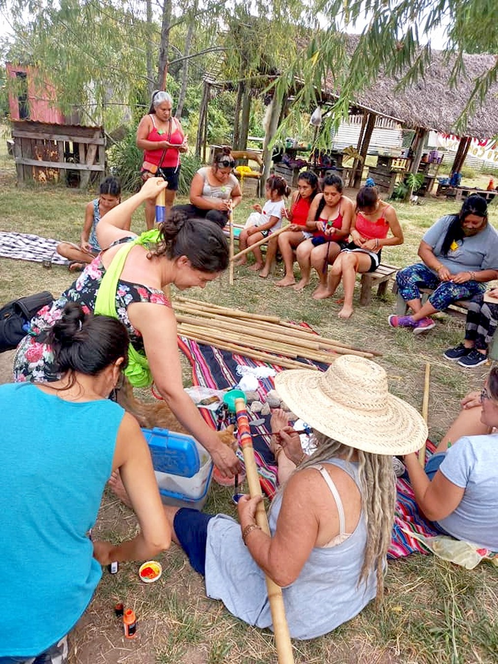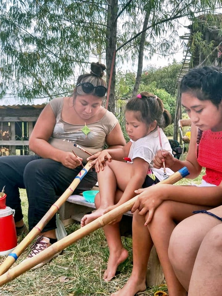 Luego se pasó a otra instancia, la de la creatividad, decorando takuapus de la comunidad (instrumentos musicales guaraní) mientras que otras mujeres tejieron en telares. También se prendió el horno de barro para cocinar pan casero que después fue repartido entre todas las presentes en agradecimiento por el día compartido.
