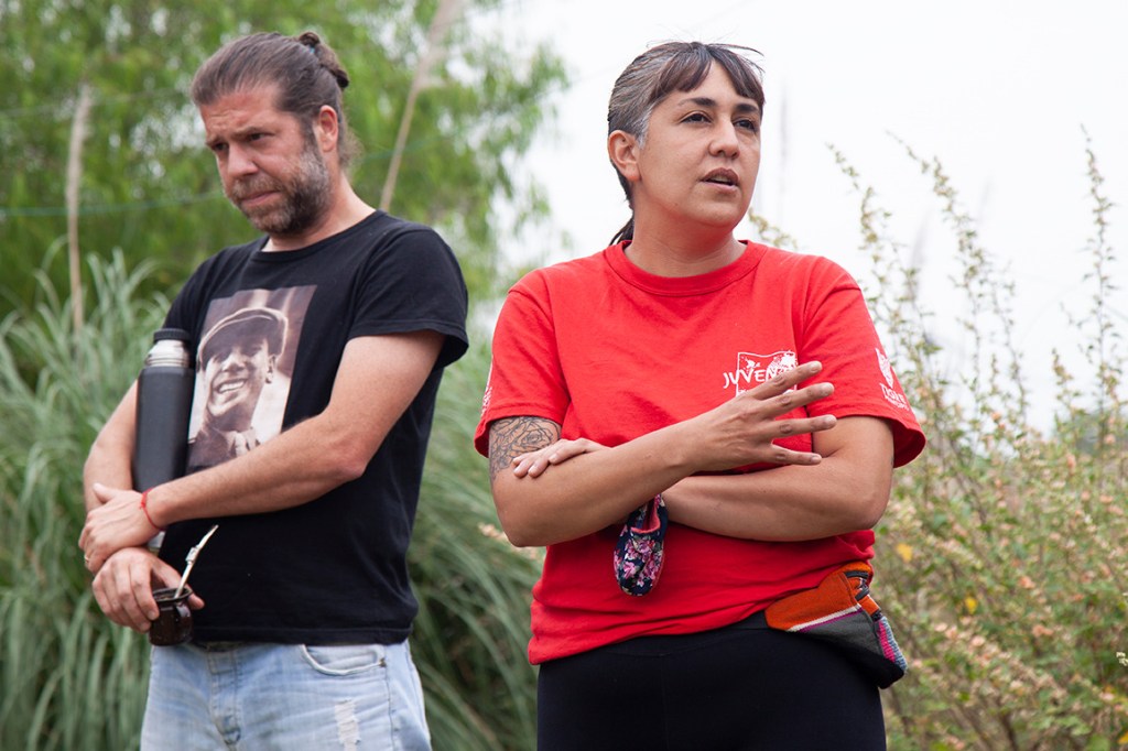 Toni Reyes Leon, integrante de la Comunidad Indígena Tres Ombúes de Ciudad Evita (La Matanza), aprovechó el encuentro para advertir sobre la situación de emergencia en dicho territorio, en donde pocos días después comenzaron un acampe de recuperación.