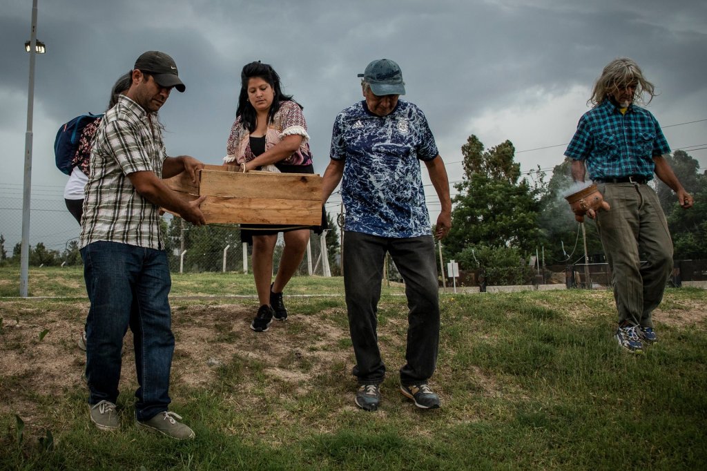 En julio pasado, el primero de los cuerpos fue reenterrado en la Comunidad Indígena Punta Querandí, que pocos meses antes había logrado el reconocimiento de sus derechos territoriales a través de un Convenio de Propiedad Comunitaria firmado con el intendente Julio Zamora.