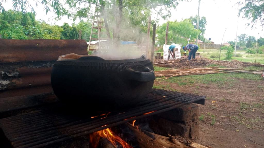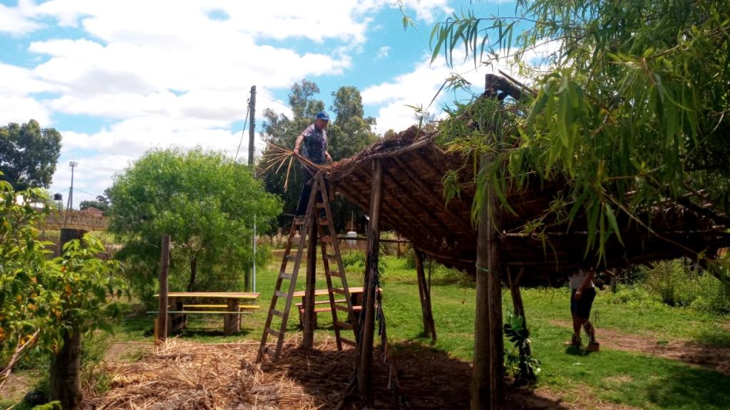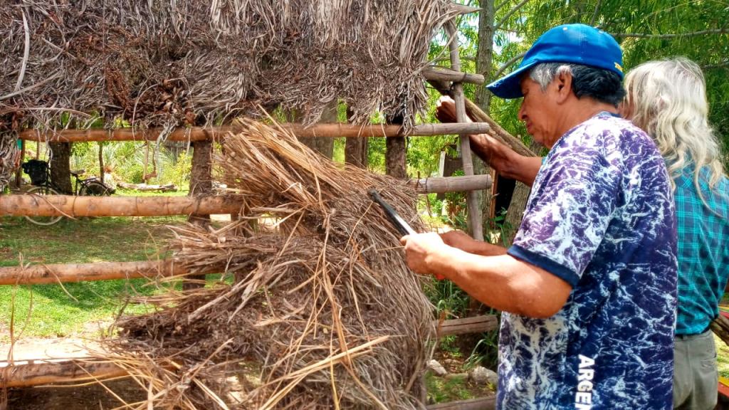 El domingo 6 de febrero comenzó la reconstrucción del quincho, que cumplió su ciclo después de media década. Levantado entre 2015 y 2016, ese objetivo fue muy importante porque la comunidad se fortaleció con la kapi’i ñaro (paja brava) y dio puntapie para diversas construcciones que marcaron el camino hasta lograr el reconocimiento del derecho territorial.