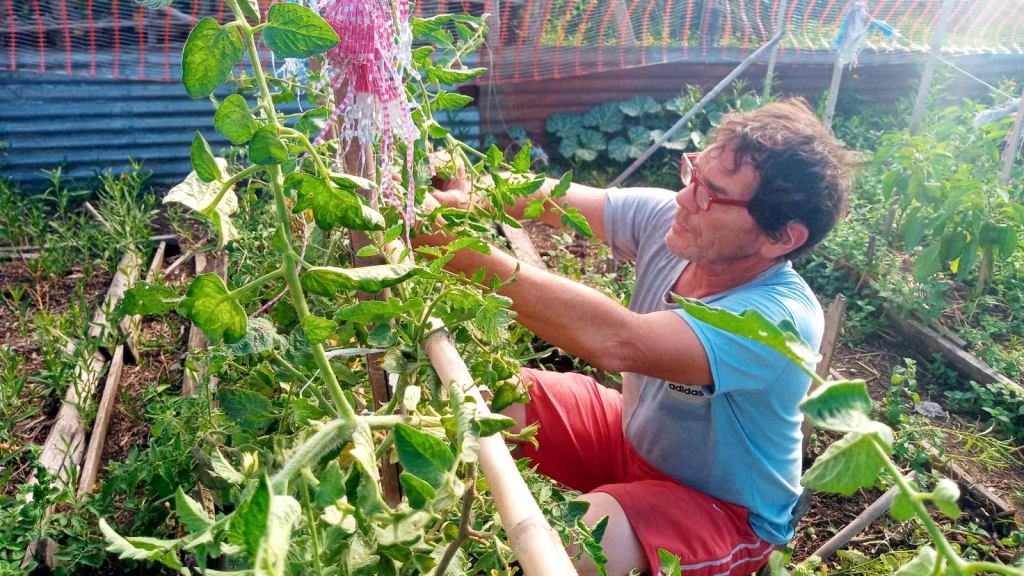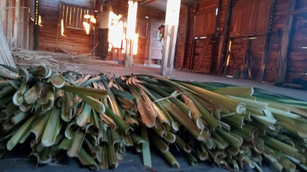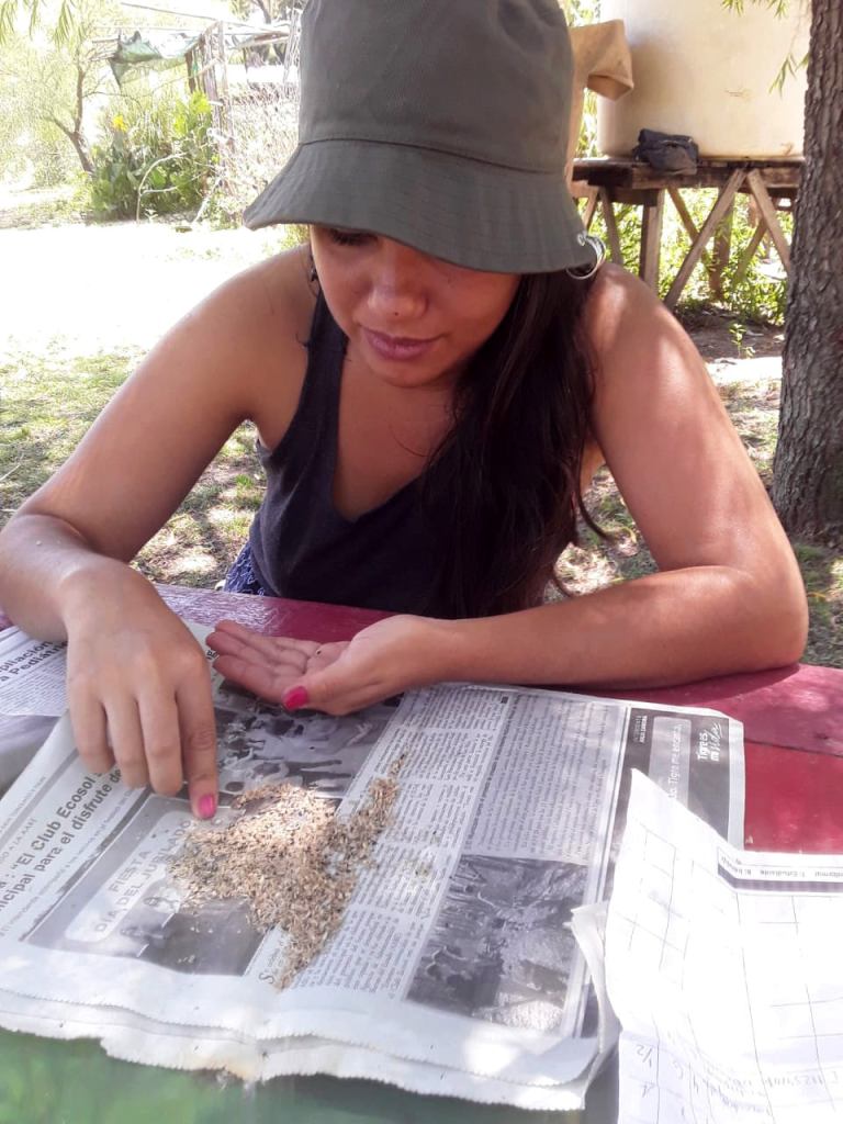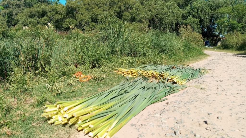 El objetivo de la reconstrucción del quincho ya está en marcha con la estructura de postes de palmera y sauce. También las tareas para la siembra de la temporada otoño invierno: preparamos las semillas y acondicionamos los bancales sacándole suyos, removiendo la tierra y cubriendo con pasto seco. Además cortamos más totora para elaborar artesanías y limpiamos algunos sectores invadidos por cardos, entre otras actividades.