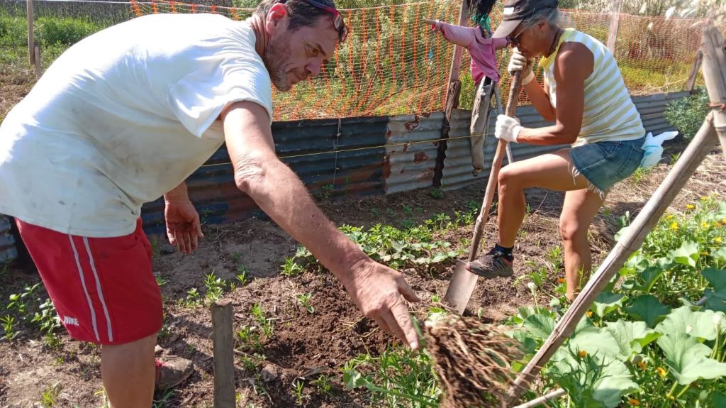 Fotos de las jornadas del pasado jueves 2 y domingo 6 de marzo, centradas en la instalación de una escalera para el Taller, el mantenimiento y la renovación de la huerta, la limpieza donde se proyecta la renovación del vivero y la preparación de los palos para la estructura del nuevo quincho.