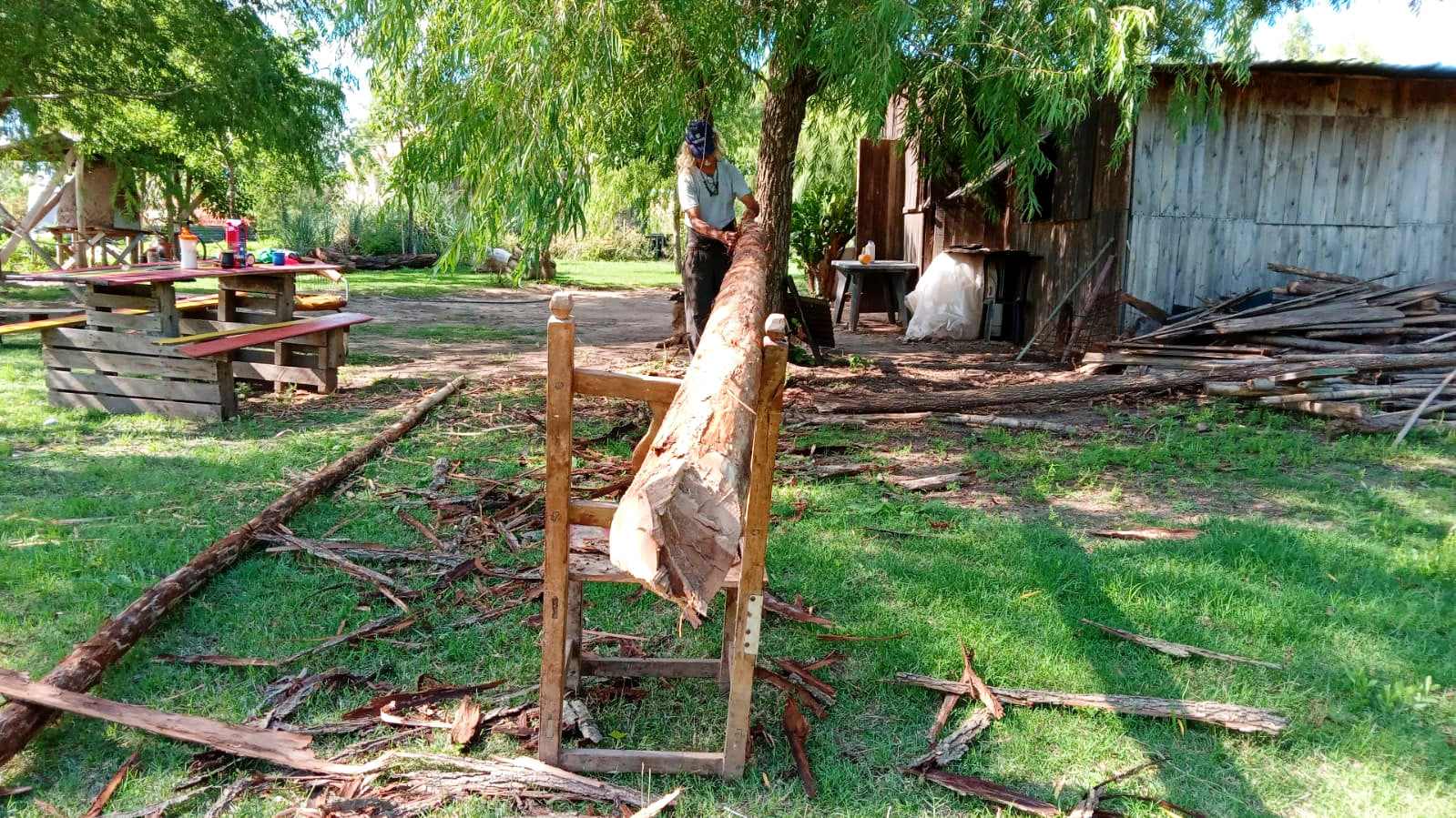 Fotos de las jornadas del pasado jueves 2 y domingo 6 de marzo, centradas en la instalación de una escalera para el Taller, el mantenimiento y la renovación de la huerta, la limpieza donde se proyecta la renovación del vivero y la preparación de los palos para la estructura del nuevo quincho.