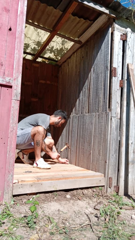 Otra importante novedad es que se terminó la obra de la ducha, tarea realizada por los compas Esteban y Ransés del Movimiento de Trabajadores Excluídos (MTE) de Escobar.