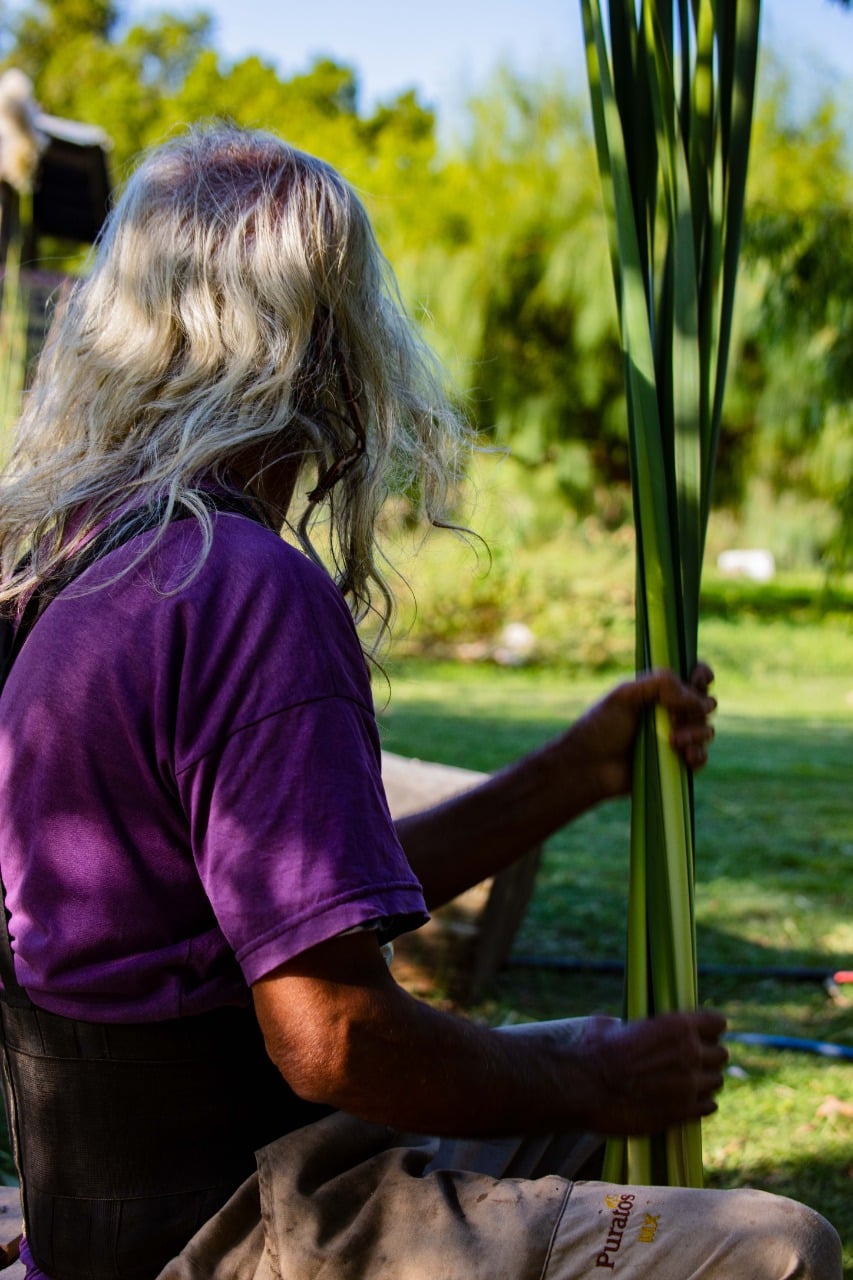Fotos de las jornadas del 11 al 17 de marzo, donde las tareas estuvieron dedicadas a la renovación de la huerta para la nueva temporada, el mantemiento de la plantación de tabaco y la preparación de plantines. También se cortó totora en un bañado cercano para hacer artesanías con cestería.
