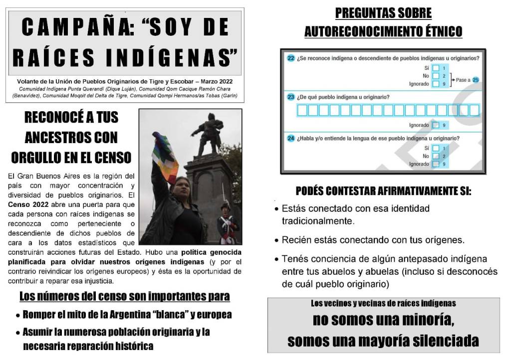 Comenzamos a recorrer distintos barrios para hablar con sus habitantes sobre la importancia del autoreconocimiento étnico en el próximo censo. ¿Vivís en Tigre o Escobar y querés sumarte a las volanteadas?