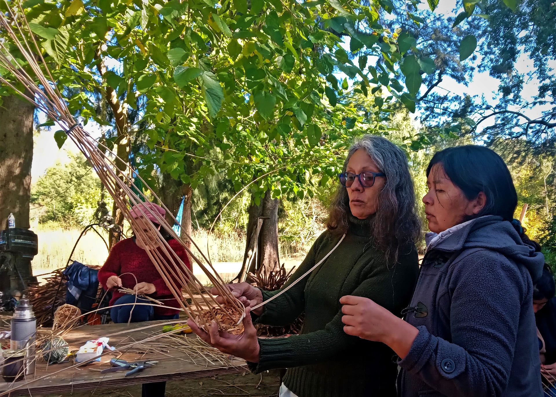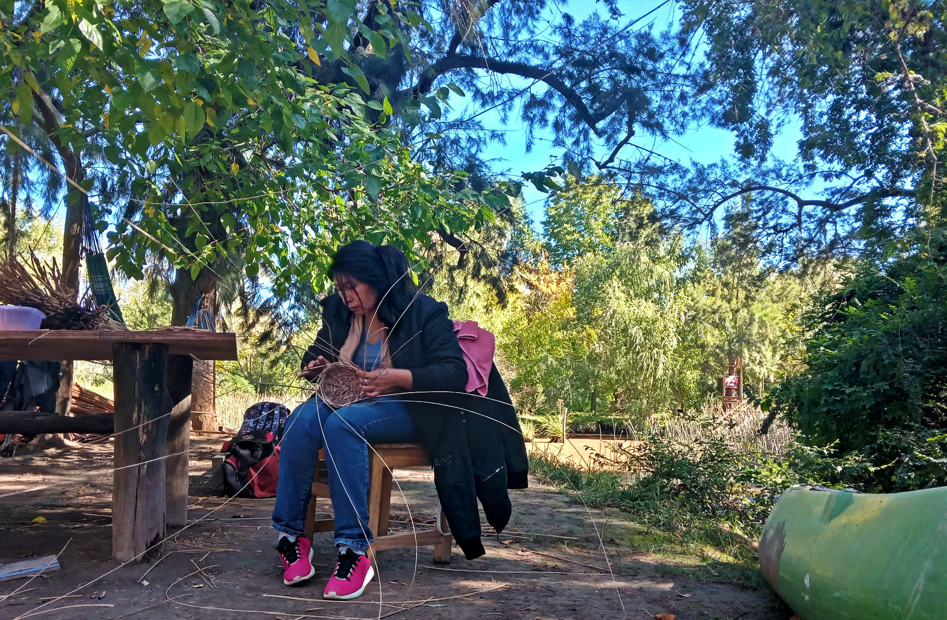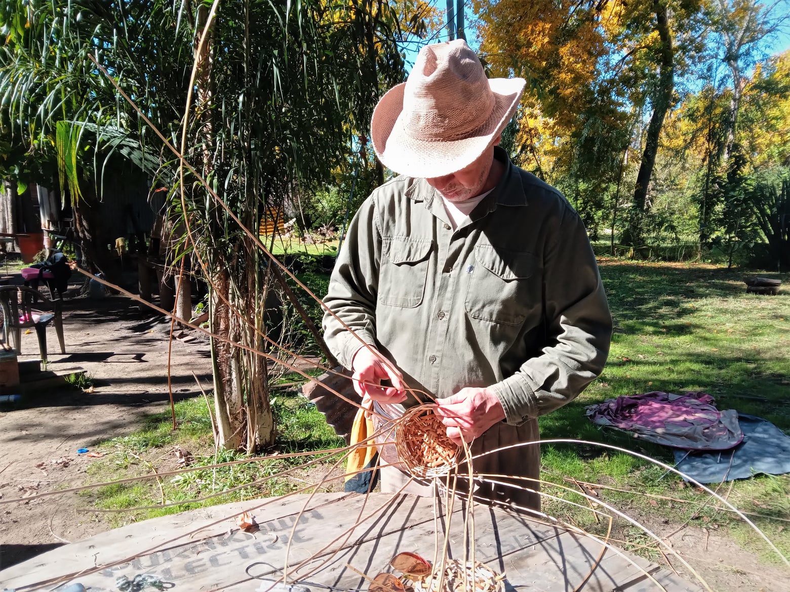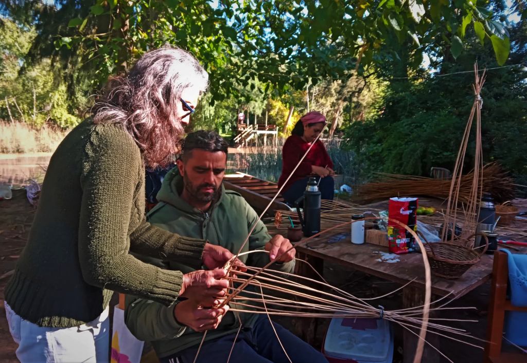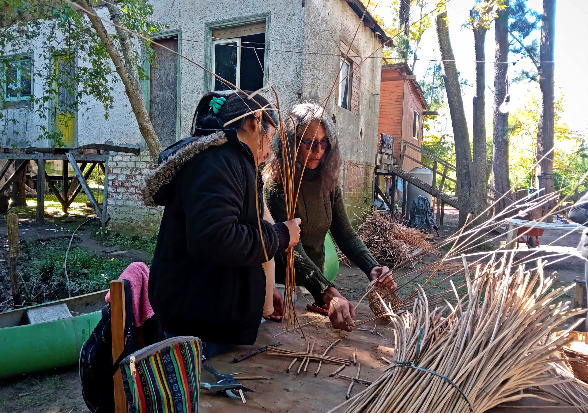 Semanalmente, la Unión de Pueblos Originarios de Tigre y Escobar lleva adelante una capacitación de cestería en uno de los terrenos de la Comunidad Moqoit del Delta donde hay plantaciones de mimbre.