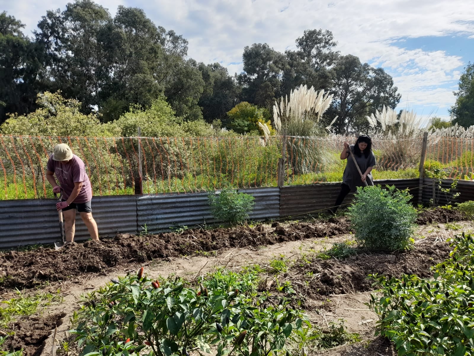En las últimas semanas, la prioridad estuvo en la huerta agroecológica, además de trasplantar algunas verduras se hicieron mejoras en el sistema de riego. También se avanzó en la estructura del quincho y en el taller de producción, sumado al corte de pasto y otras tareas habituales de mantenimiento.