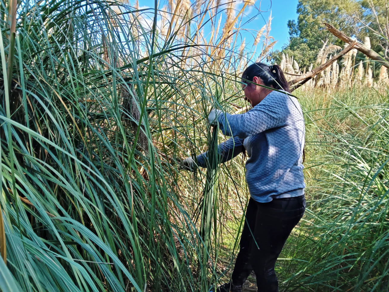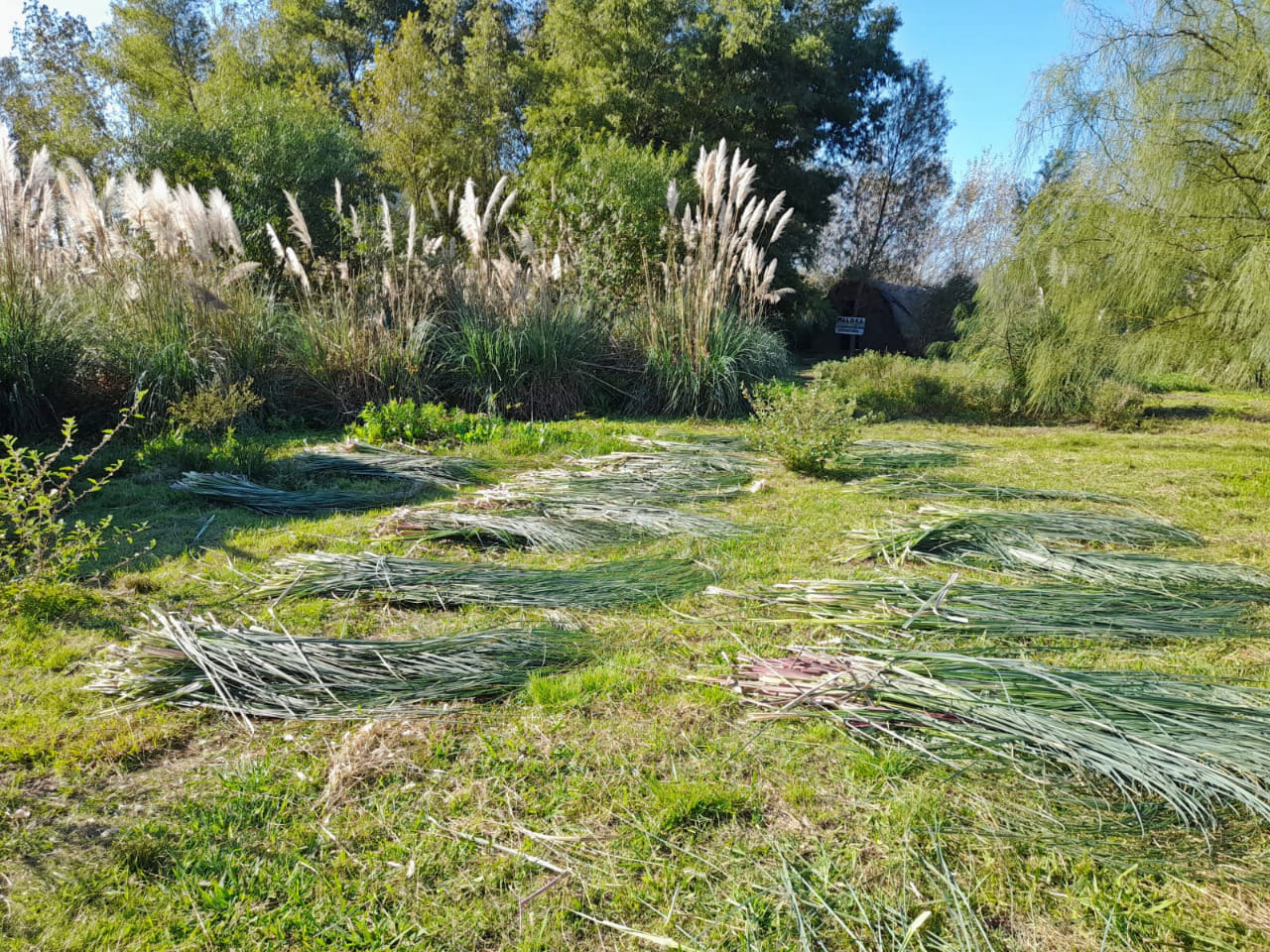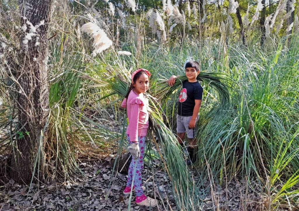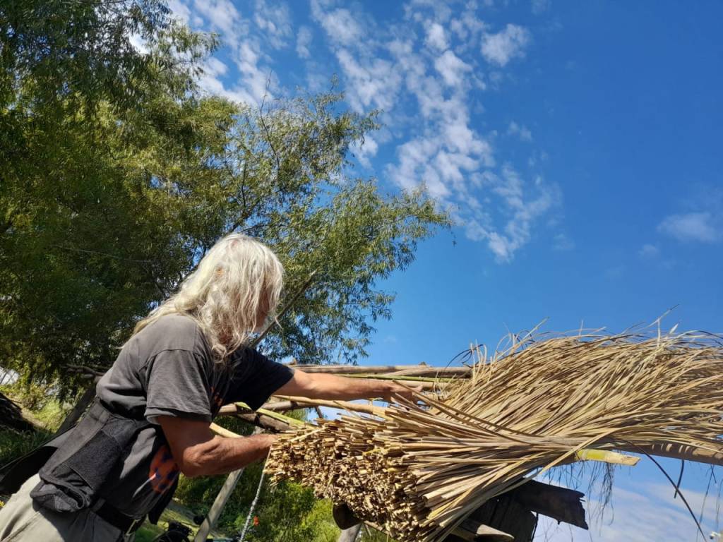 Como en cada luna de cuarto menguante, el territorio ancestral y sagrado de Punta Querandí vivió el domingo 24 de abril una jornada de trabajo donde se cortó kapi’i ñaro (paja brava) vital para poder avanzar con la construcción del techo del quincho comunitario.