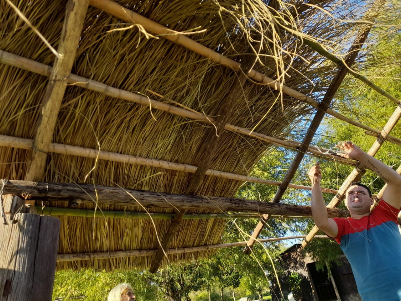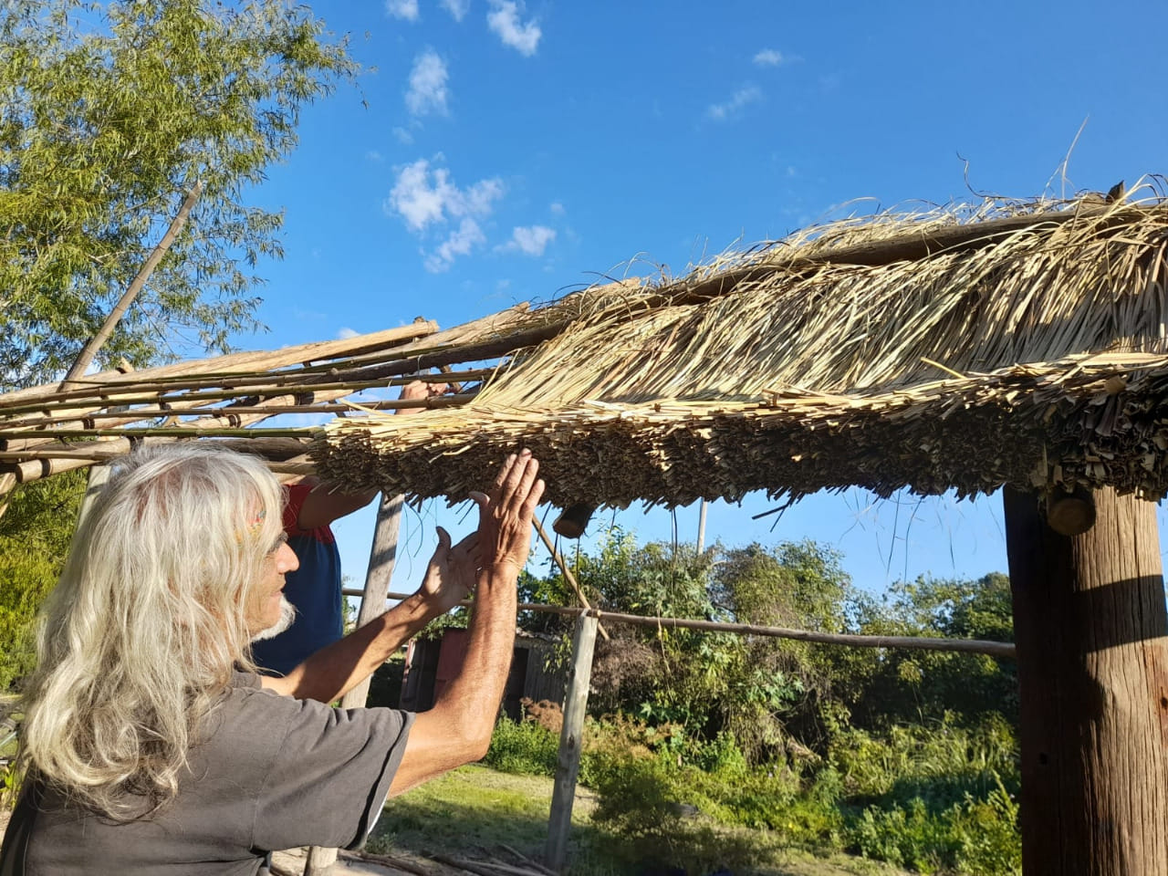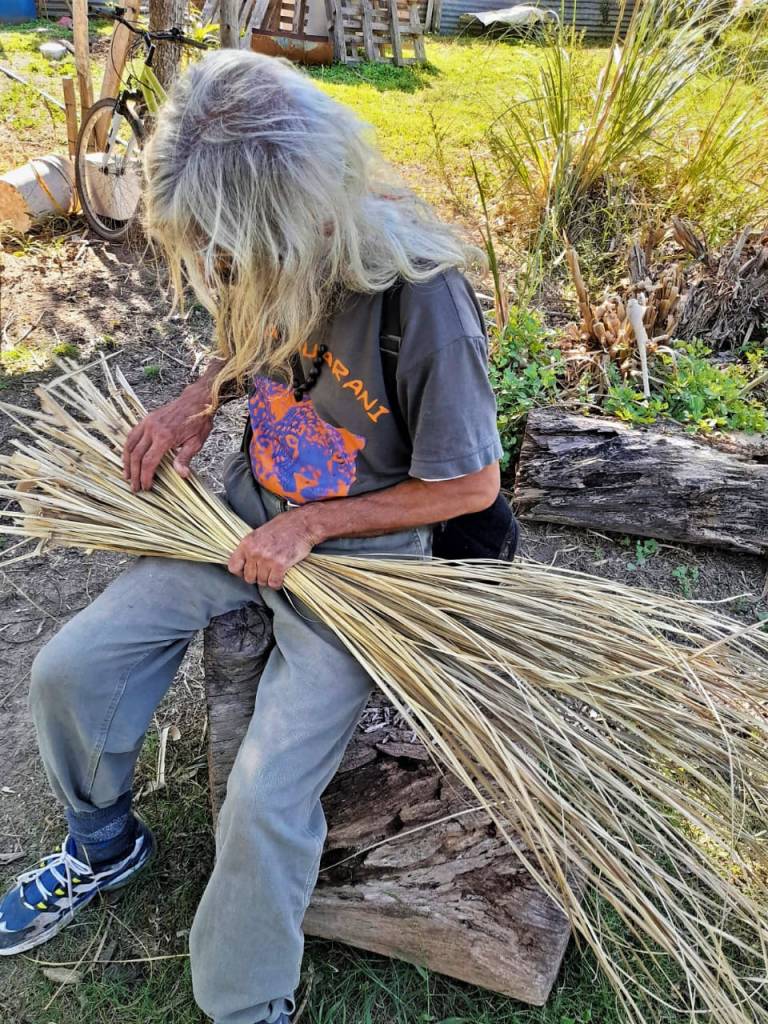 Como en cada luna de cuarto menguante, el territorio ancestral y sagrado de Punta Querandí vivió el domingo 24 de abril una jornada de trabajo donde se cortó kapi’i ñaro (paja brava) vital para poder avanzar con la construcción del techo del quincho comunitario.