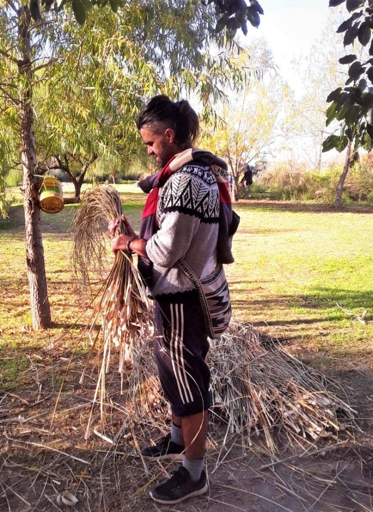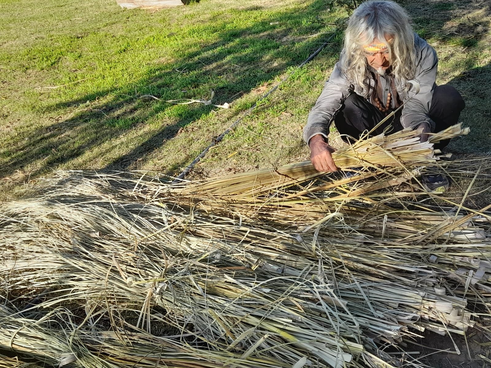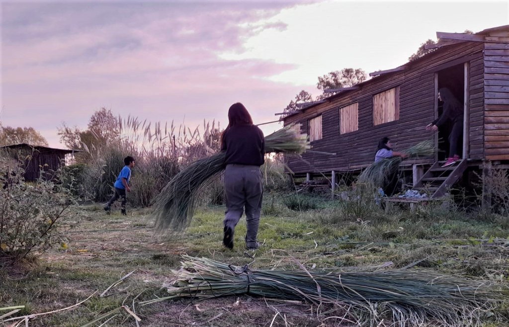 Una de nuestras prioridades es la reconstrucción del quincho, por eso cada luna de cuarto menguante la principal actividad es el corte colectivo de kapi’i ñaro (paja brava). Además compartimos un rico almuerzo y recibimos visitas al Museo Autónomo de Gestión Indígena y otros espacios significativos de Punta Querandí.