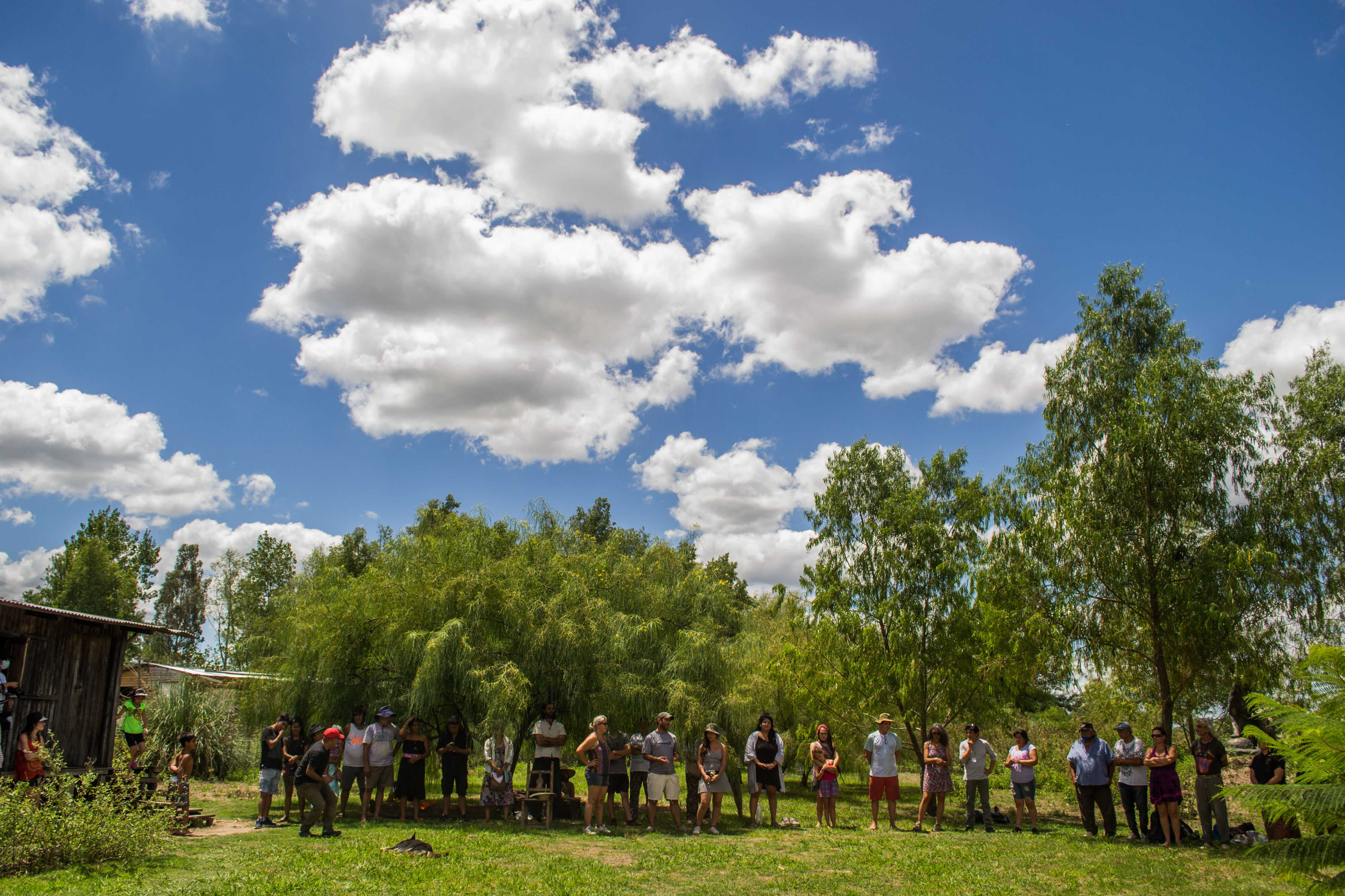 A pocos metros del quincho, justo en diagonal a la casa principal, hay otra construcción un poco más pequeña en donde funciona el Museo Autónomo de Gestión Indígena. Delante del museo, hay un claro. En ese momento nos invitan a participar de una práctica habitual de la comunidad: entre todxs formamos una ronda. Luego, hay una presentación informal muy amable. La palabra circula, las miradas se cruzan.